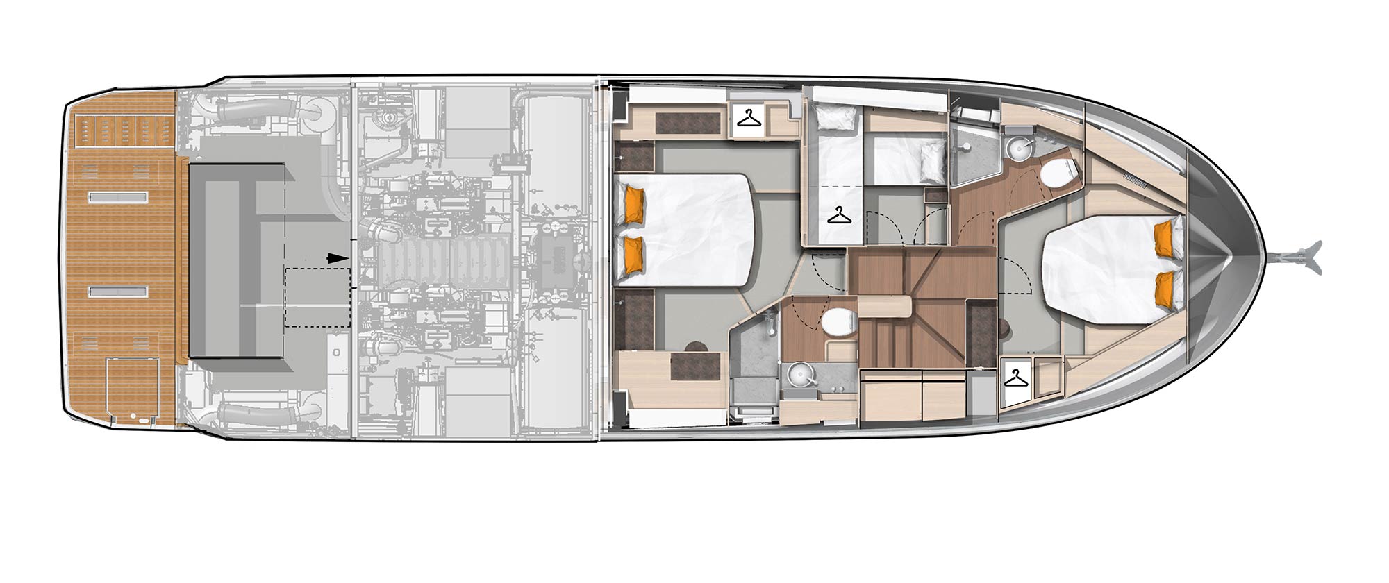 To mark the 140 years of BENETEAU heritage, an upgraded refined finish comes as standard, using premium materials to create an open space that feels elegant and sophisticated while also remaining warm, social and functional.
