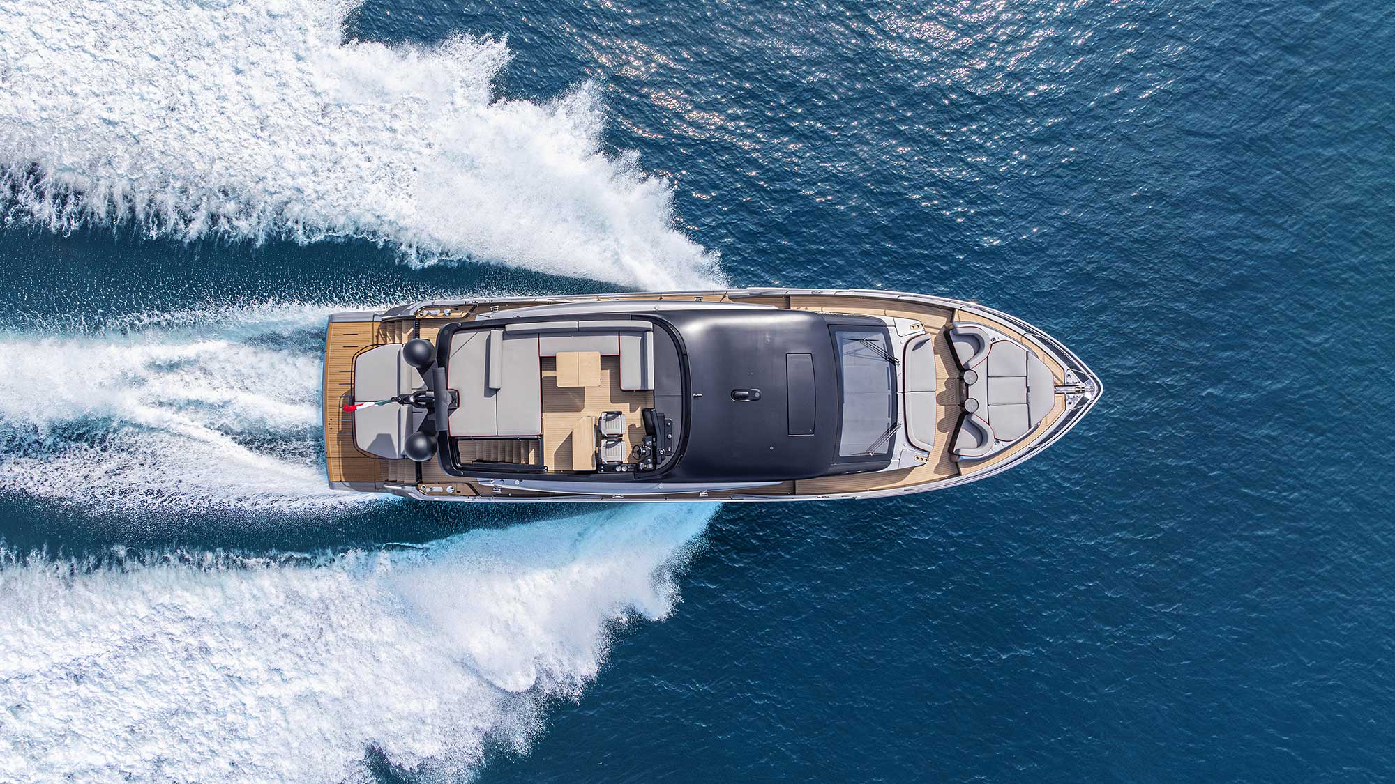 Corsa is the name that identifies a new Cranchi Yachts range, which débuts with precisely this model. Characterising the lines are precisely the new layout of the flybridge and the greater space provided to the cockpit, which is effectively a large outdoor seating area with a Mediterranean flavour, designed for meals, socialising and relaxation at any time of day.