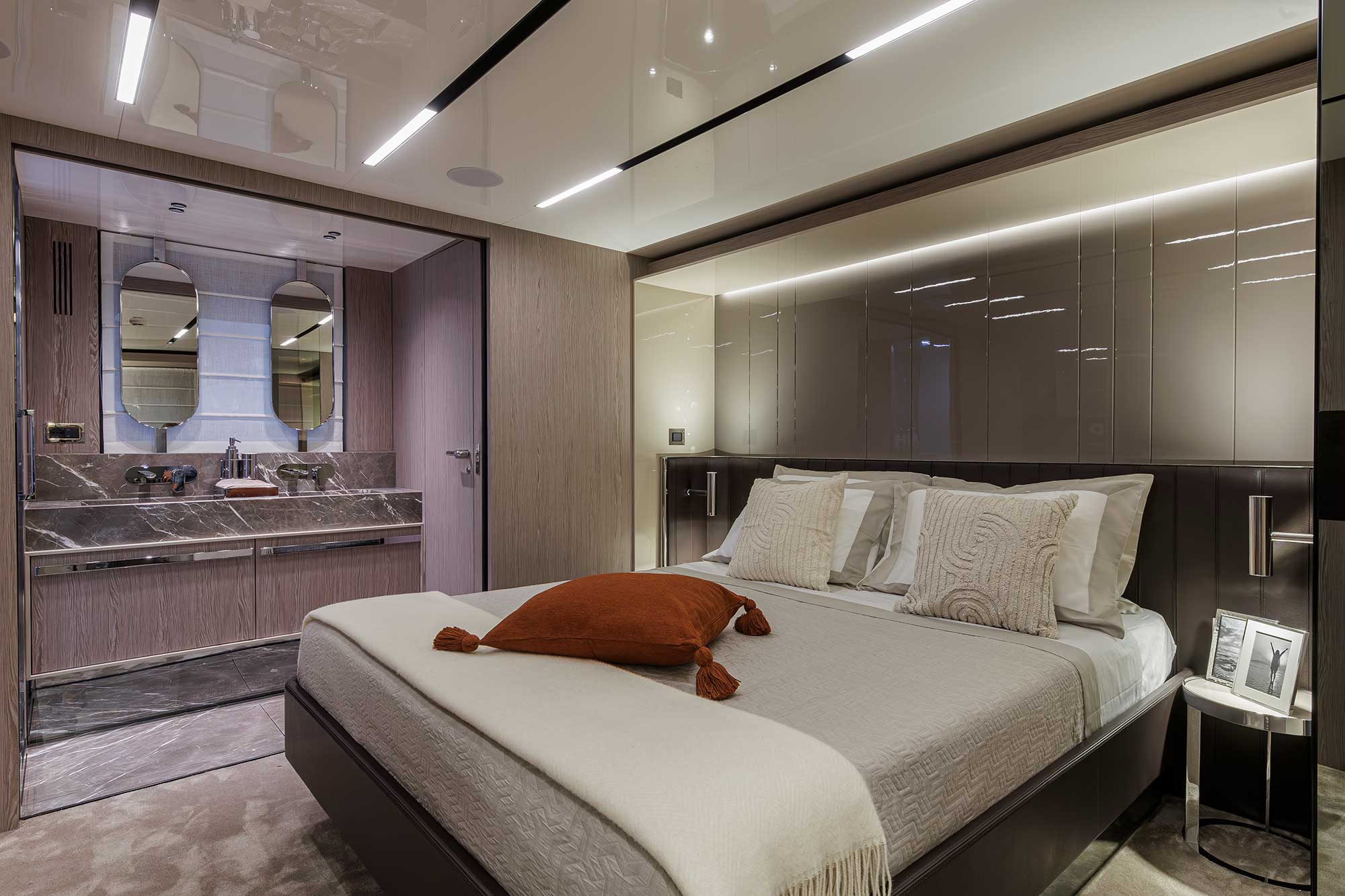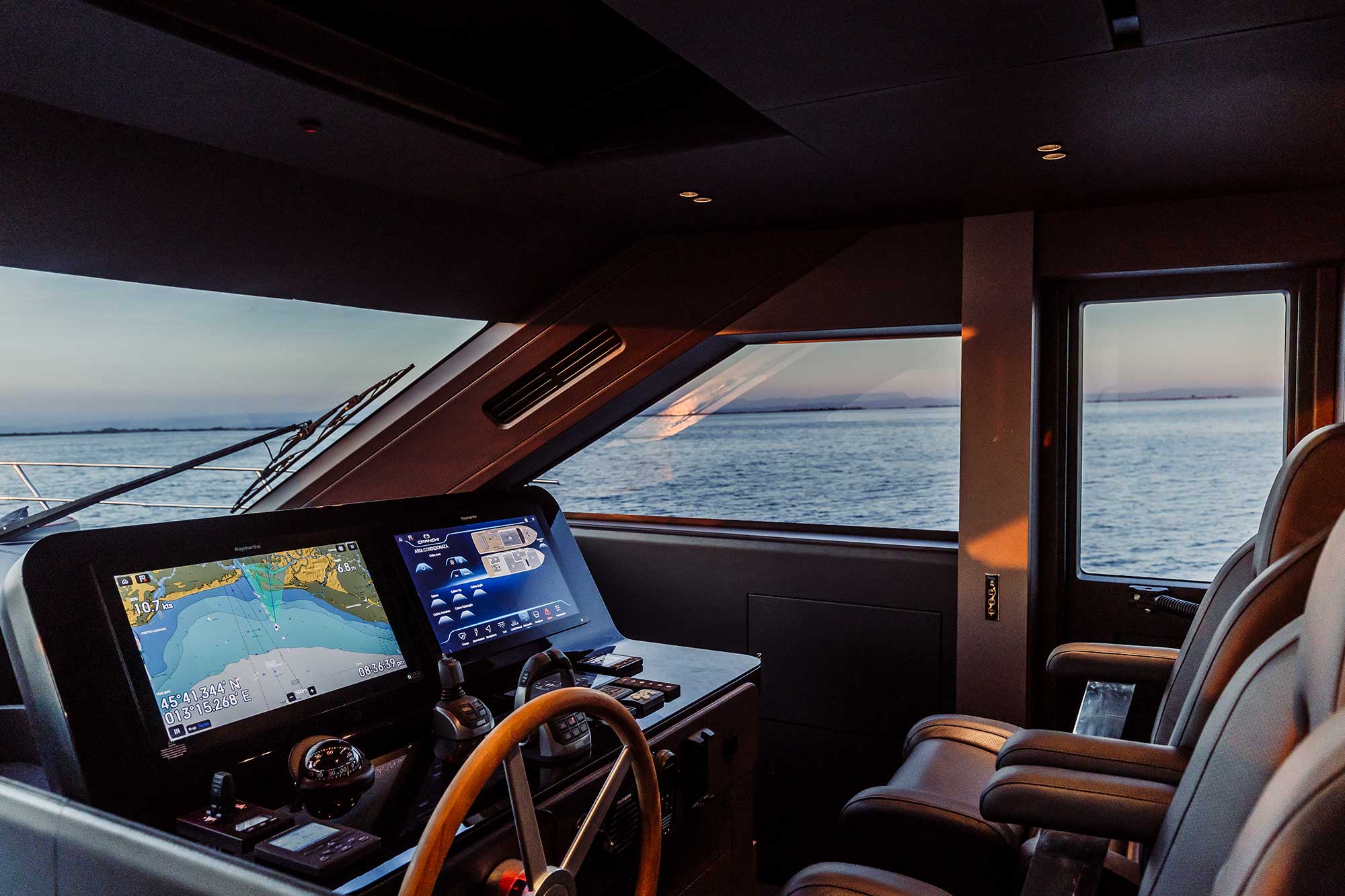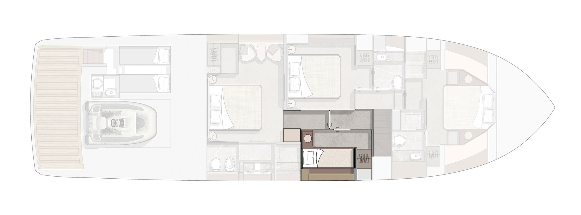 Thanks to the Cranchi Atelier program, there are also a huge number of customisation options for the Sessantasette 67 Corsa, starting from the décor choices developed by Christian Grande: combining metals, stones, woods and fabrics to best bring out and enhance the yacht’s environments and create authentically unique spaces.