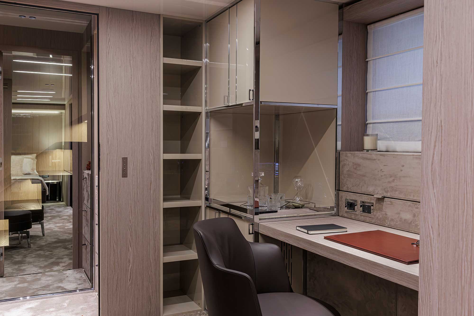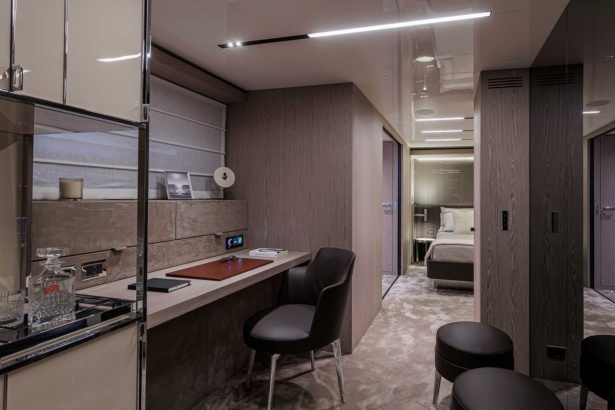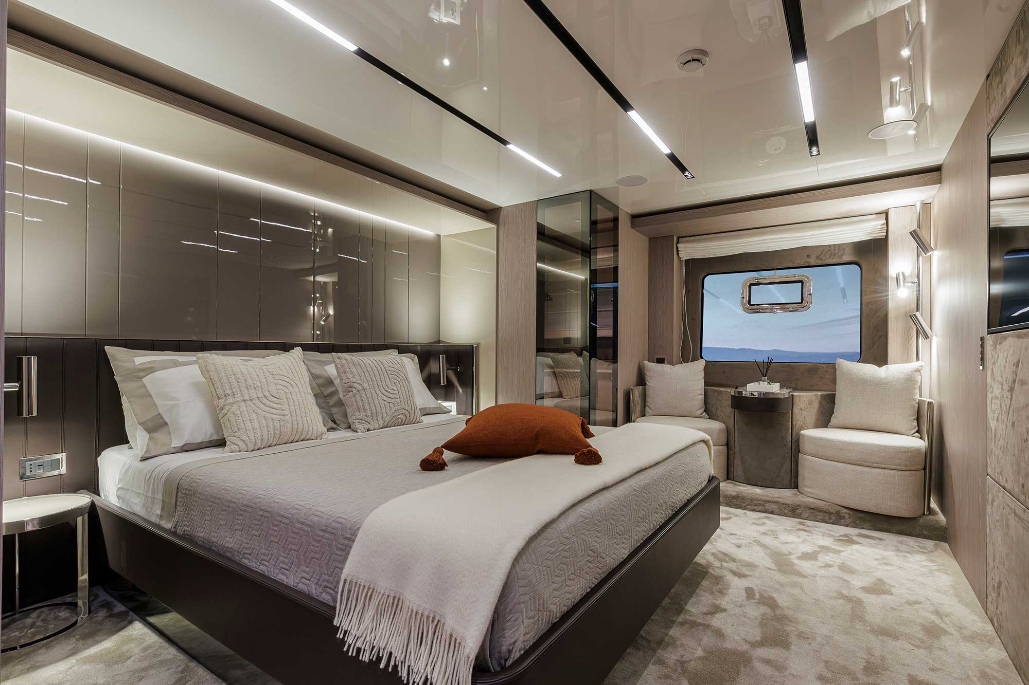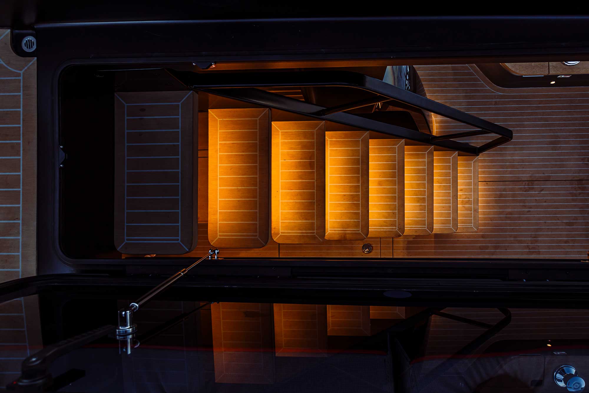 Thanks to the Cranchi Atelier program, there are also a huge number of customisation options for the Sessantasette 67 Corsa, starting from the décor choices developed by Christian Grande: combining metals, stones, woods and fabrics to best bring out and enhance the yacht’s environments and create authentically unique spaces.