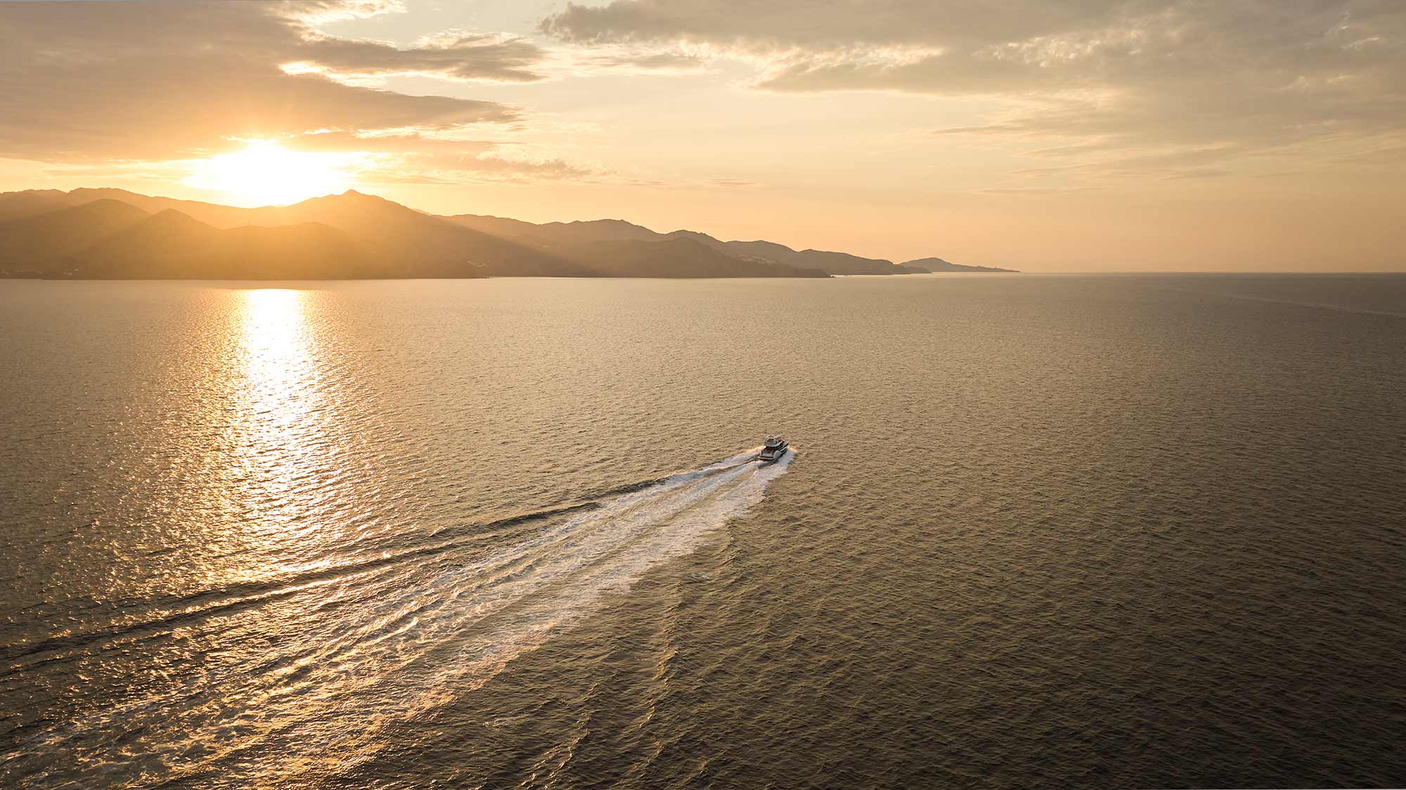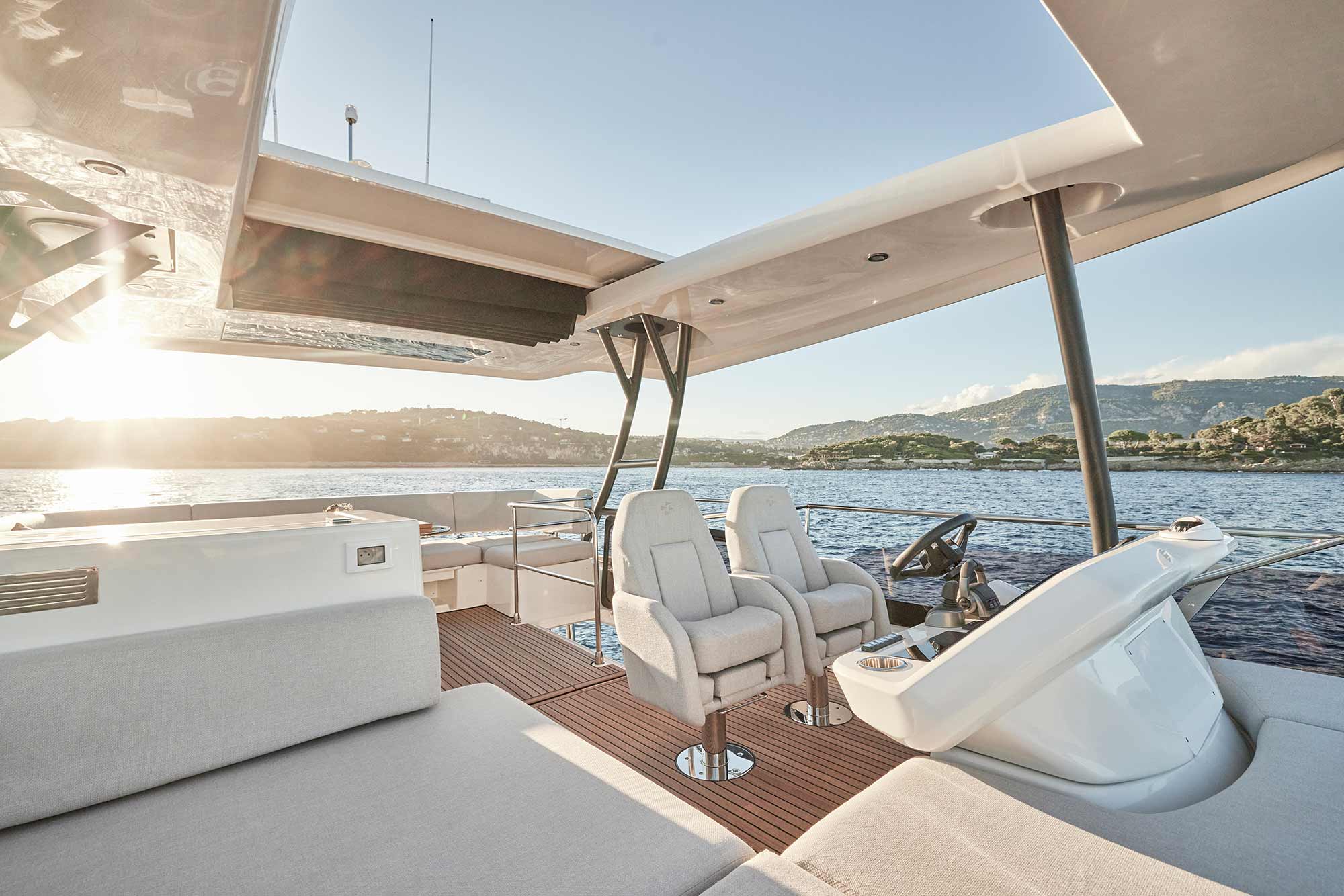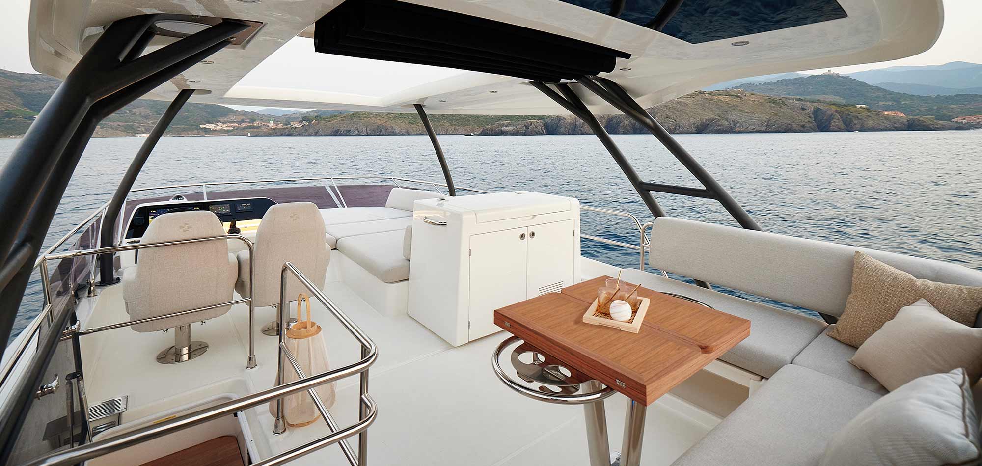 More comfortable and more enjoyable, the forward deck features both a vast sun pad and semi-circular bench seating arranged around a table – a true lounge in the middle of the ocean.