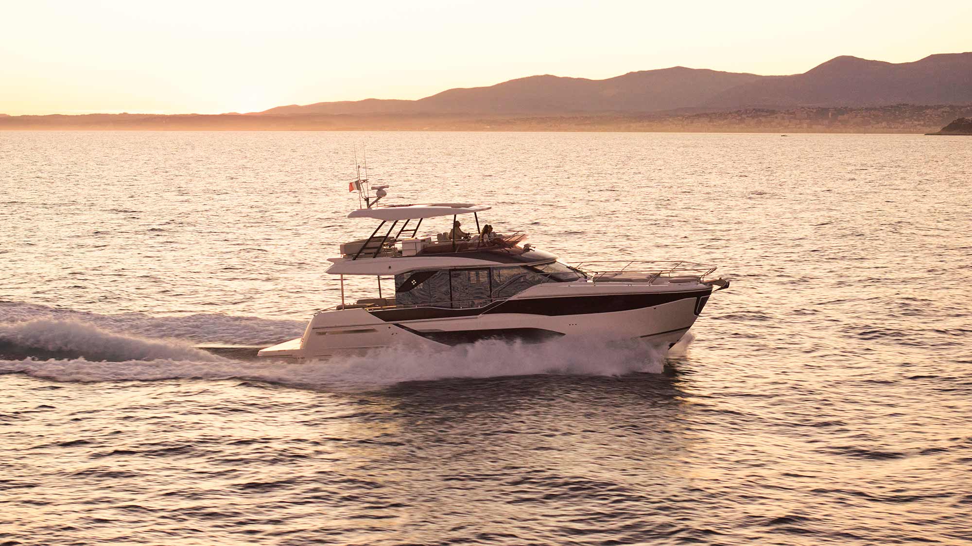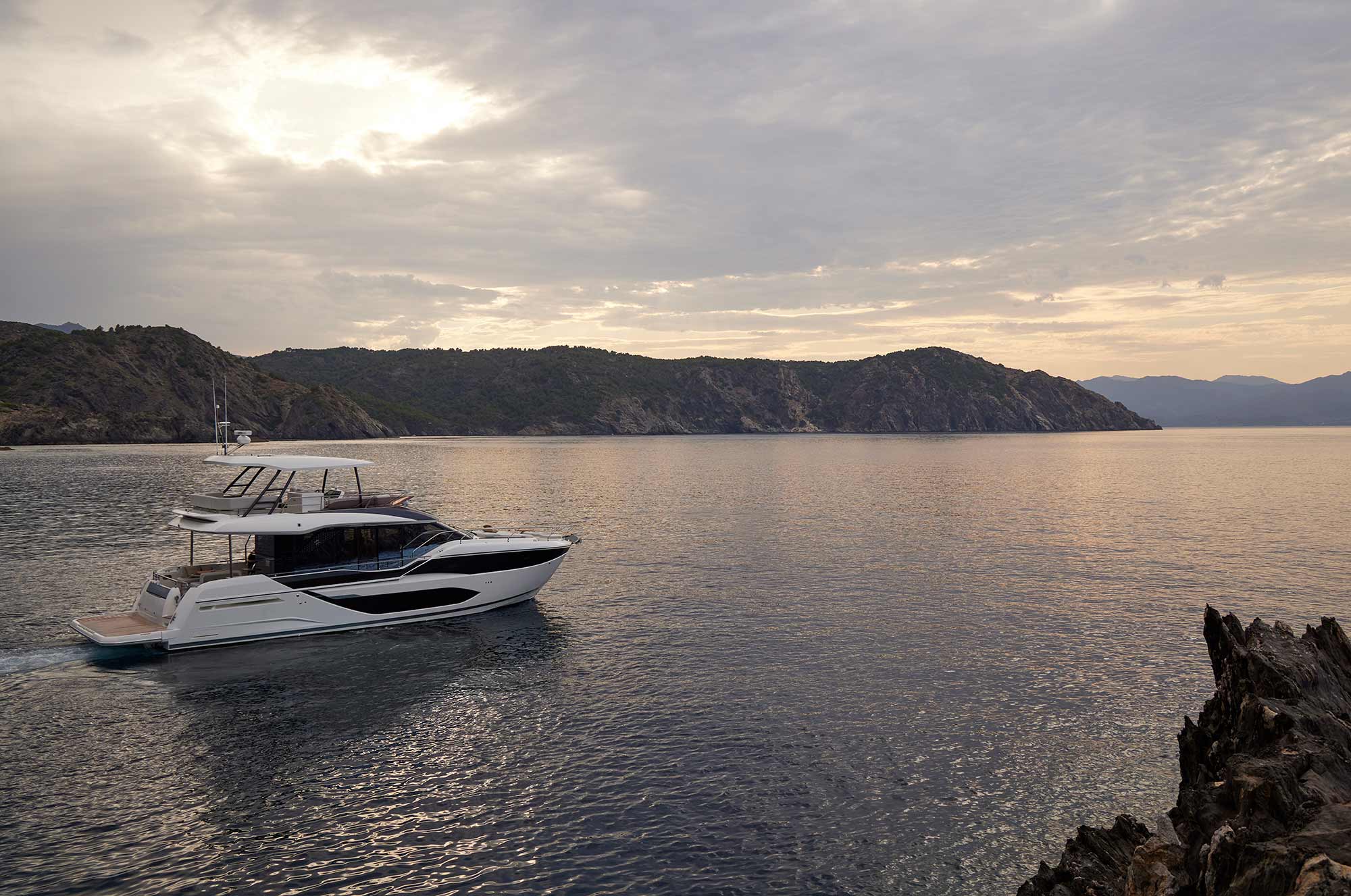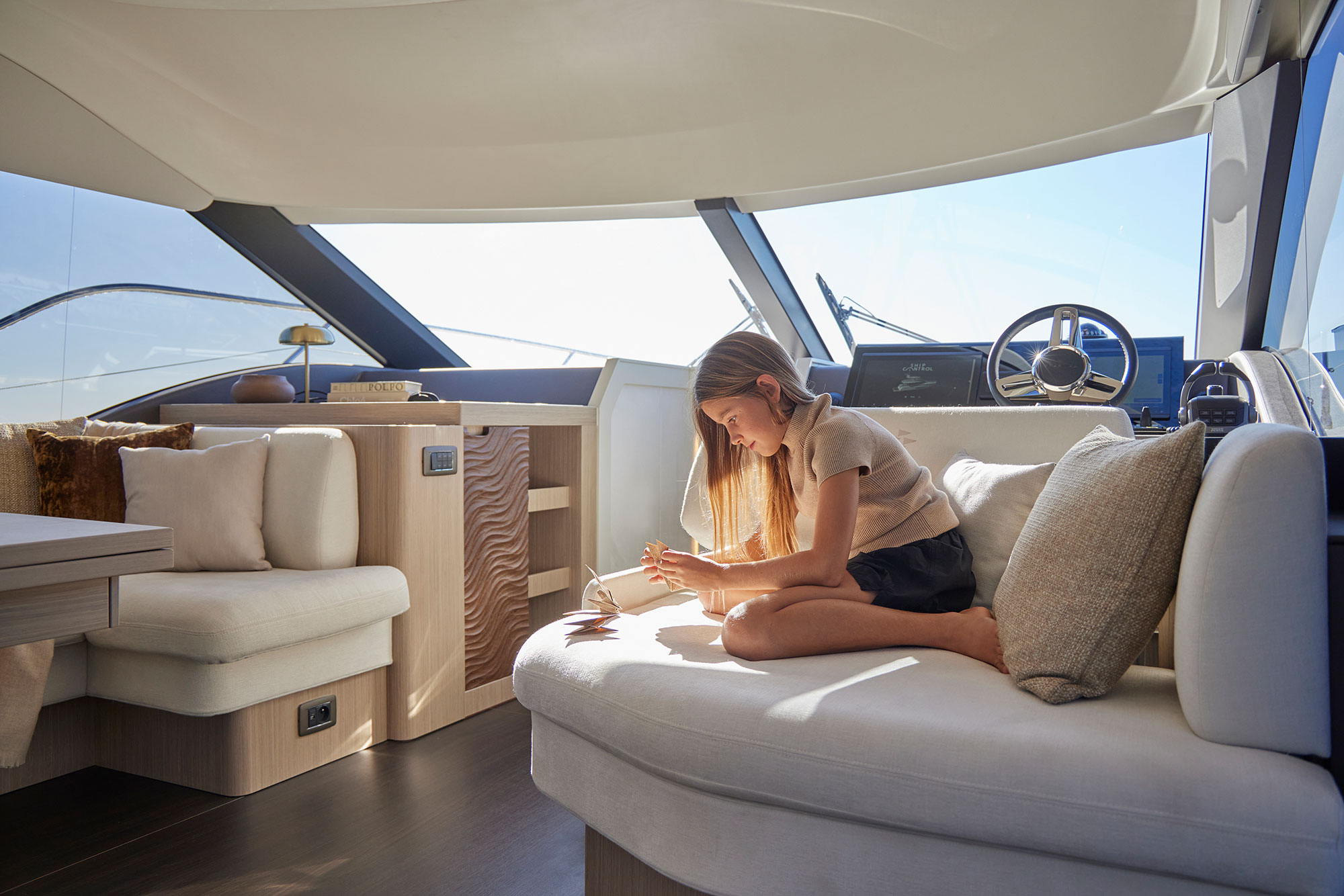 Notably: more volume, additional storage in the cockpit, a very functional galley, immense sofas, cabins equipped with en suite bathrooms… each living space aboard the F5.7 offers more light, greater ease of movement and well-being.