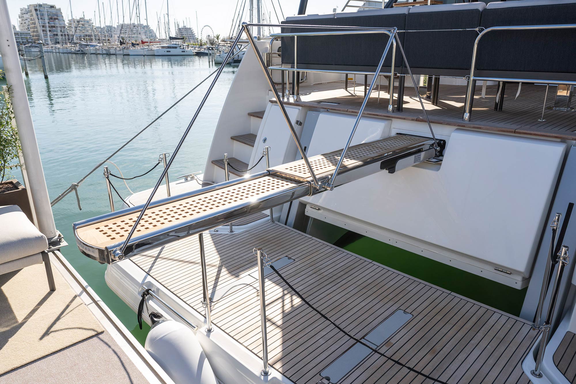 This multihull yacht reveals generous, brightly lit and refined living spaces, affording the ultimate in comfort. It promises life in harmony with the sea and at a gentle pace.