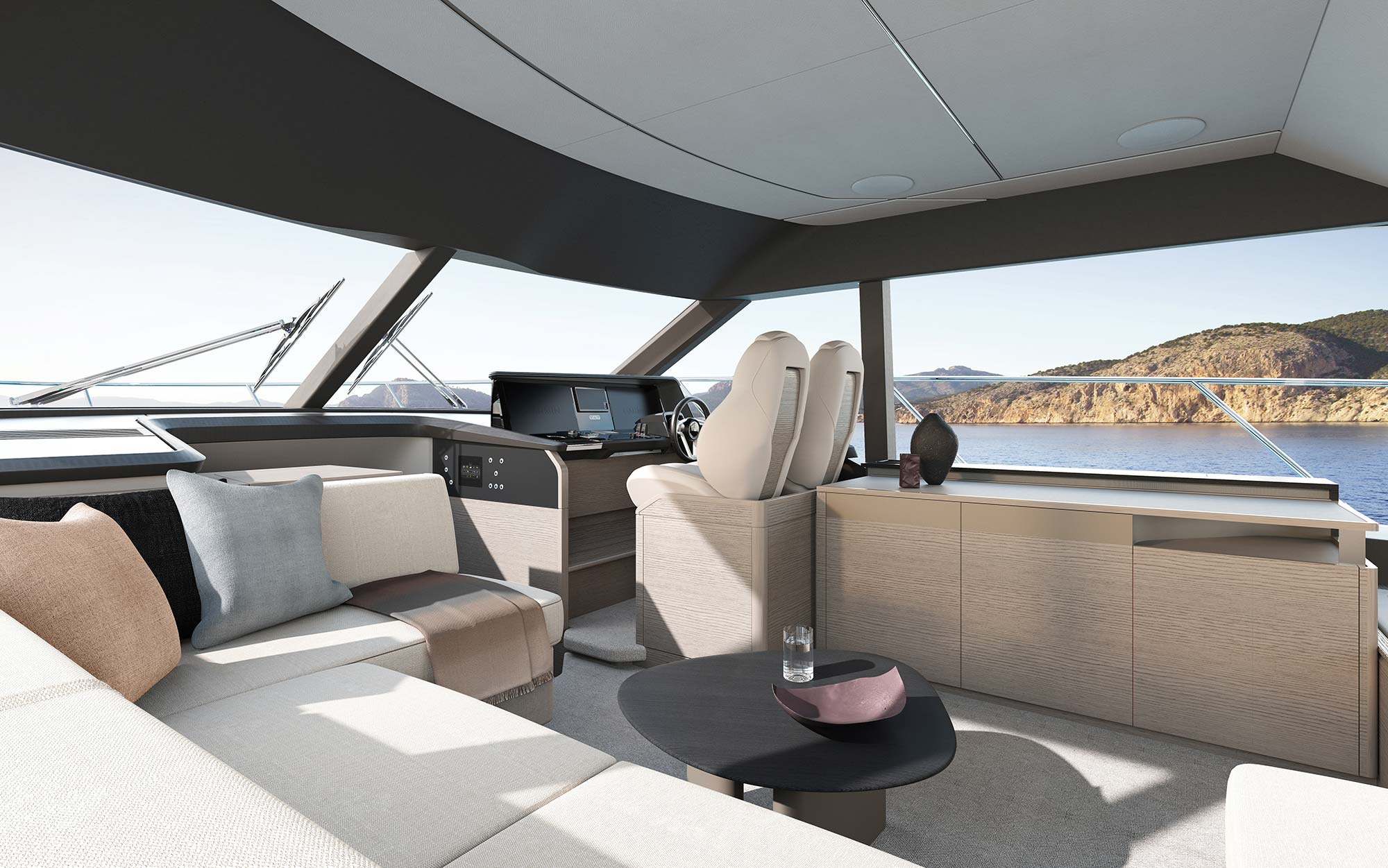 The latest addition to the F Class range, the new F54 makes life on the water effortless. With a foredeck sunpad, a new flybridge layout with companion seating, a walkaround-style transom and an optional linear bathing platform suitable for a tender, it’s perfect for socialising – or just relaxing.