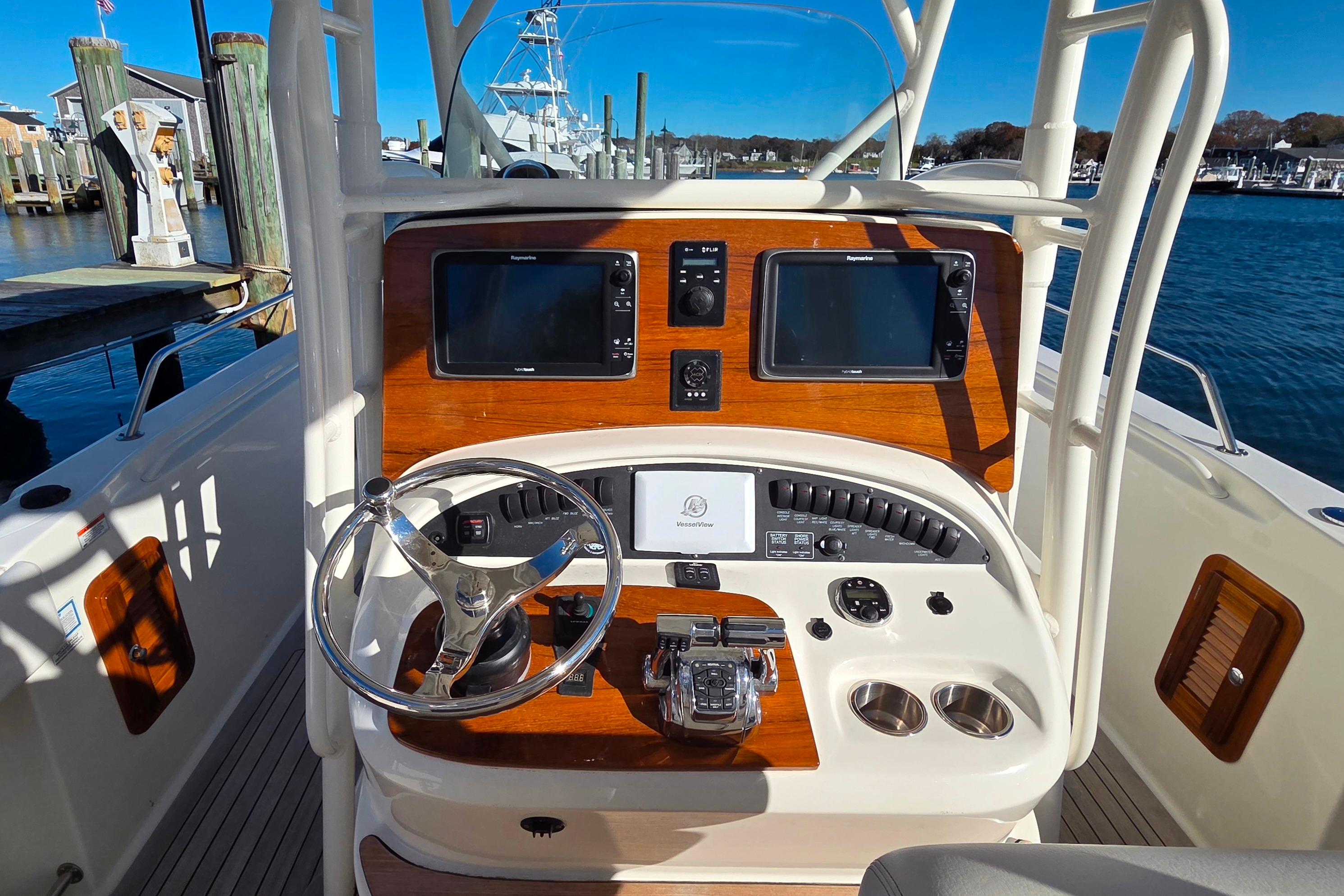 - 300 L6 DTS dual Mercury® Verado FourStroke engines with SmartCraft VesselView display and power steering