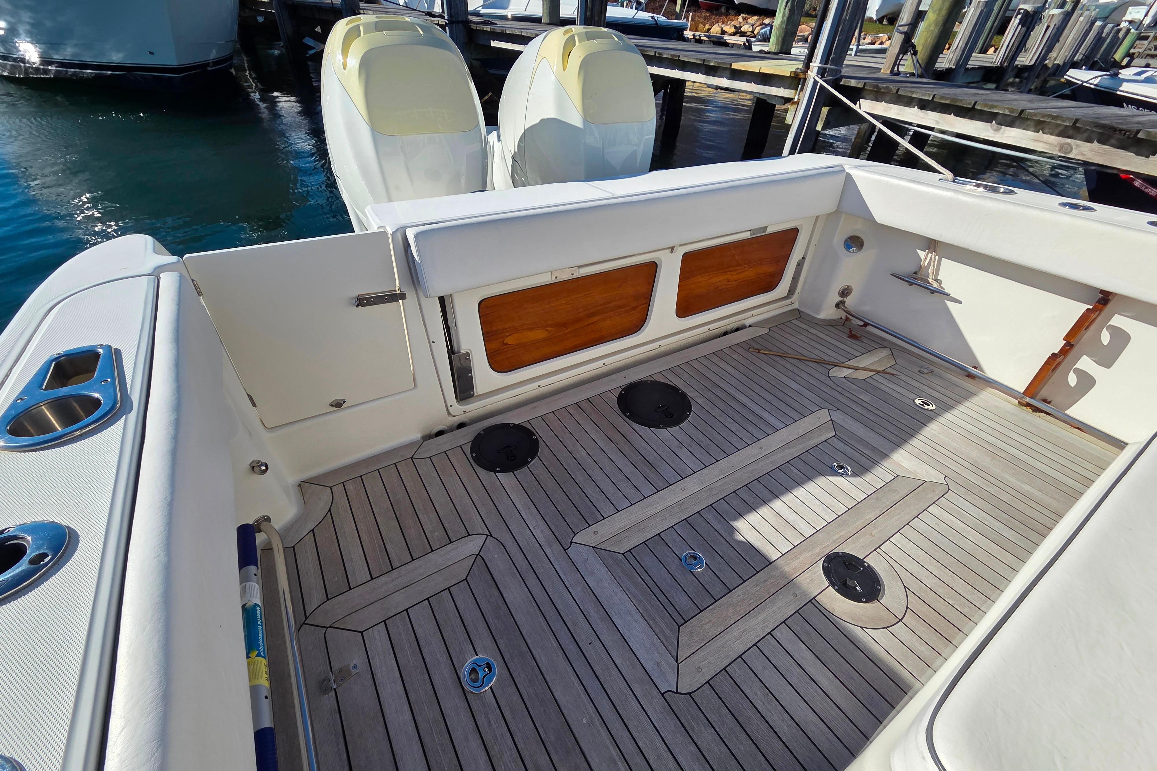 - Insulated in-floor fishboxes with pump-out - (2) aft at 80 gal each, (1) forward at 108 gal