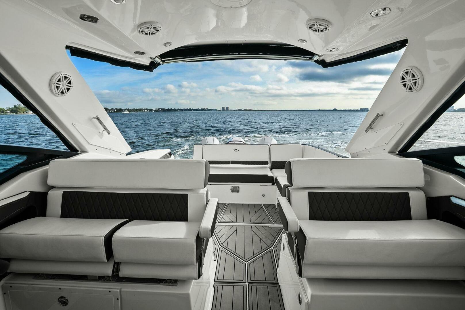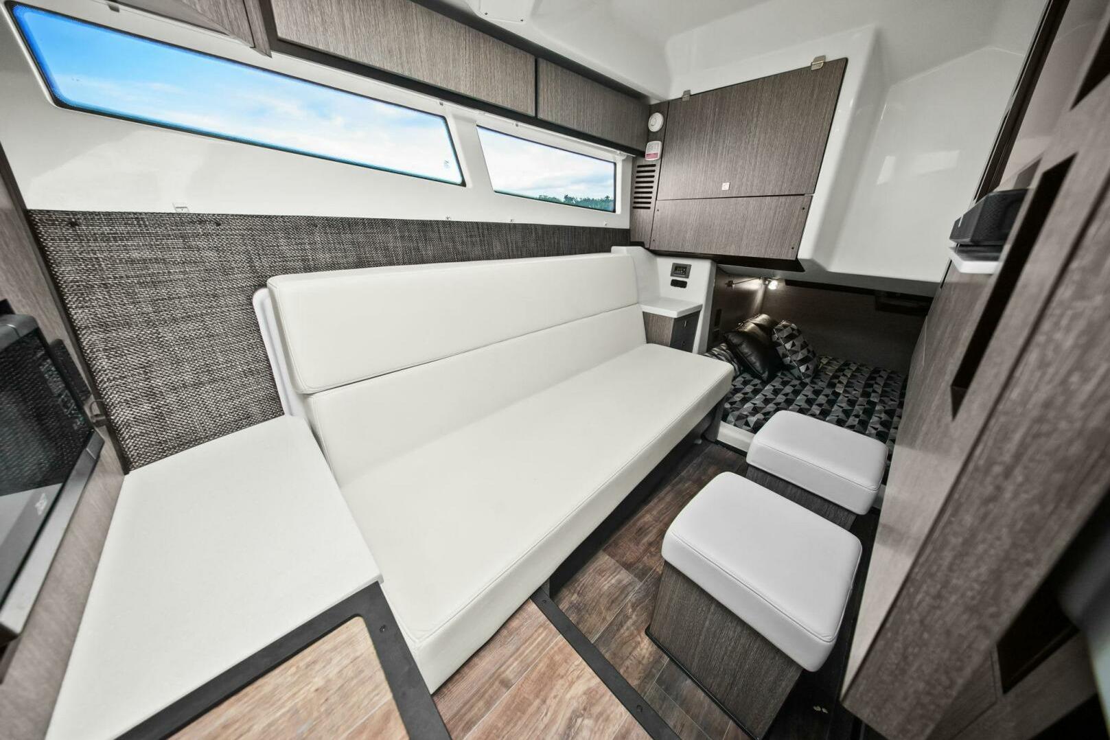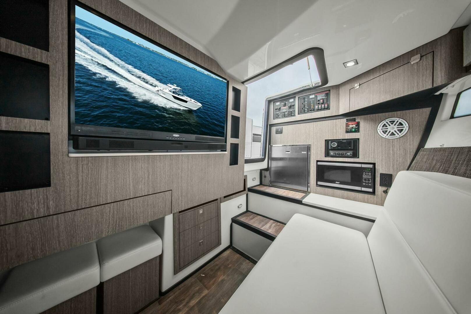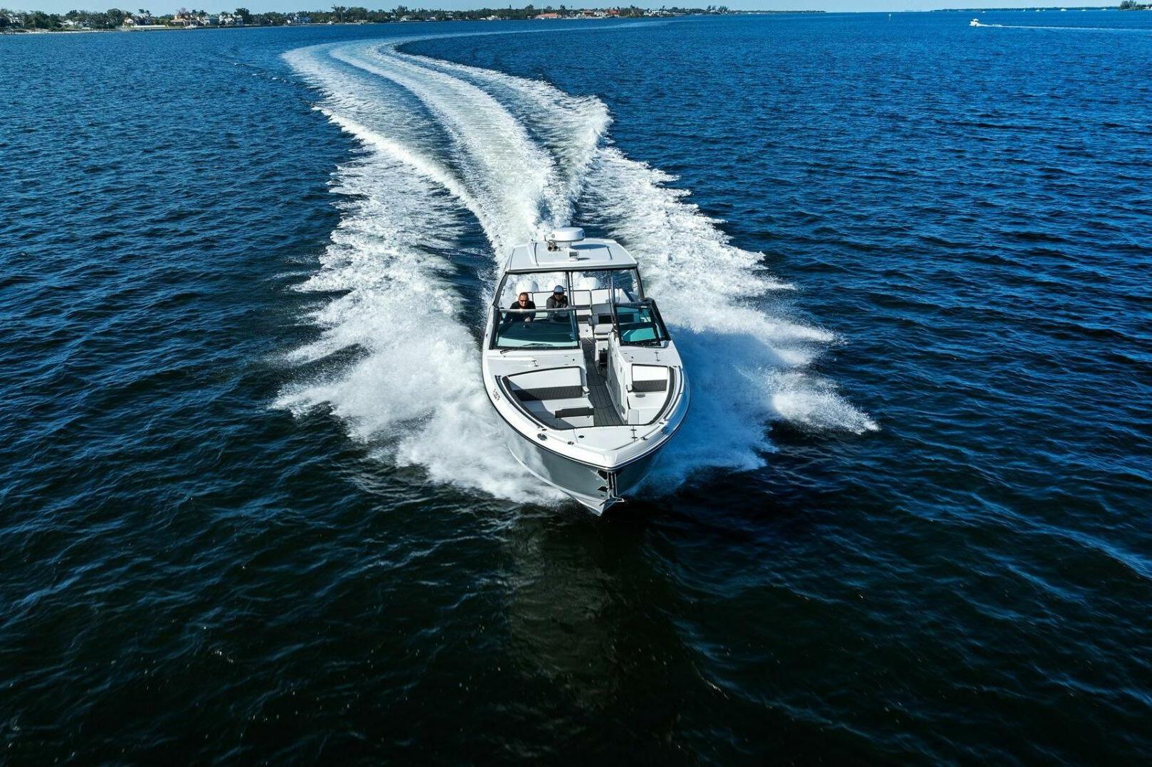 Monterey incorporates the best features for cruising the coastline with all the comforts for a day trip or overnight stay with this model. It has the size and range to make a Florida Keys excursion from Tampa Bay or a Bahamas crossing. Skyhook and Joystick control helps an owner look like a pro while waiting for bridges to open or coming into the dock with a steady breeze. The Cabin is comfortable, and the Head is roomy. I was impressed with the creature comforts and performance and look forward to the final sea trial!