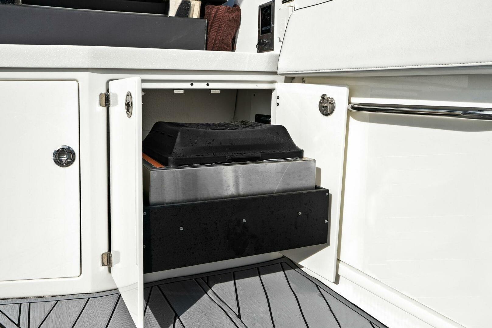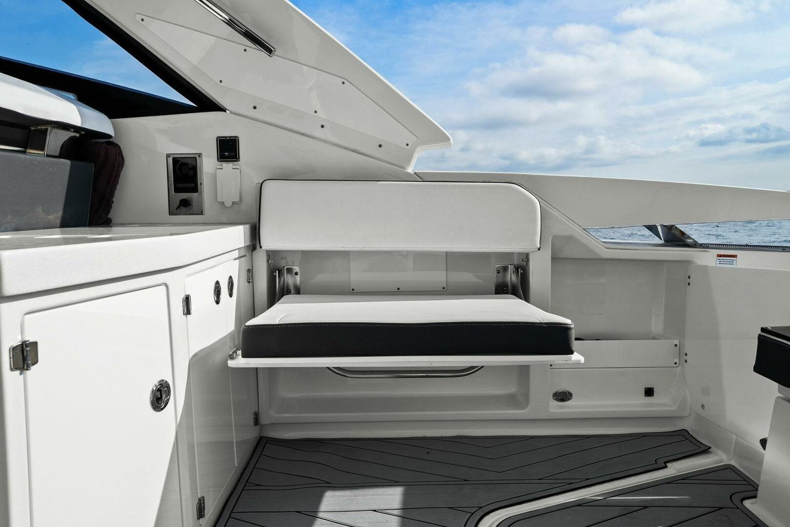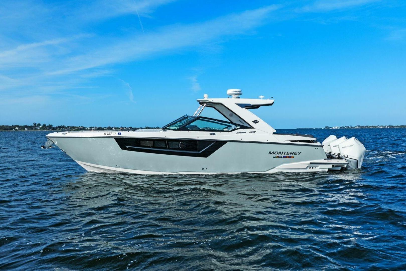 This exceptionally maintained 2023 Monterey 385 SS, powered by Triple Mercury 300 Verados (Painted White-70 Hrs) comes with Hardtop, Electric SureShade & upgraded Simrad Halo Radar. Cockpit includes the Entertainment Package complete with sink, Grill and Fridge. Cabin is fully equipped with berth, microwave, fridge, TVs, and couch. The Head is designed with toilet, vanity w/sink, vanity mirror & closet. Mercury Marine Skyhook GPS Virtual Anchor and Joystick Control add to the finishing touches!