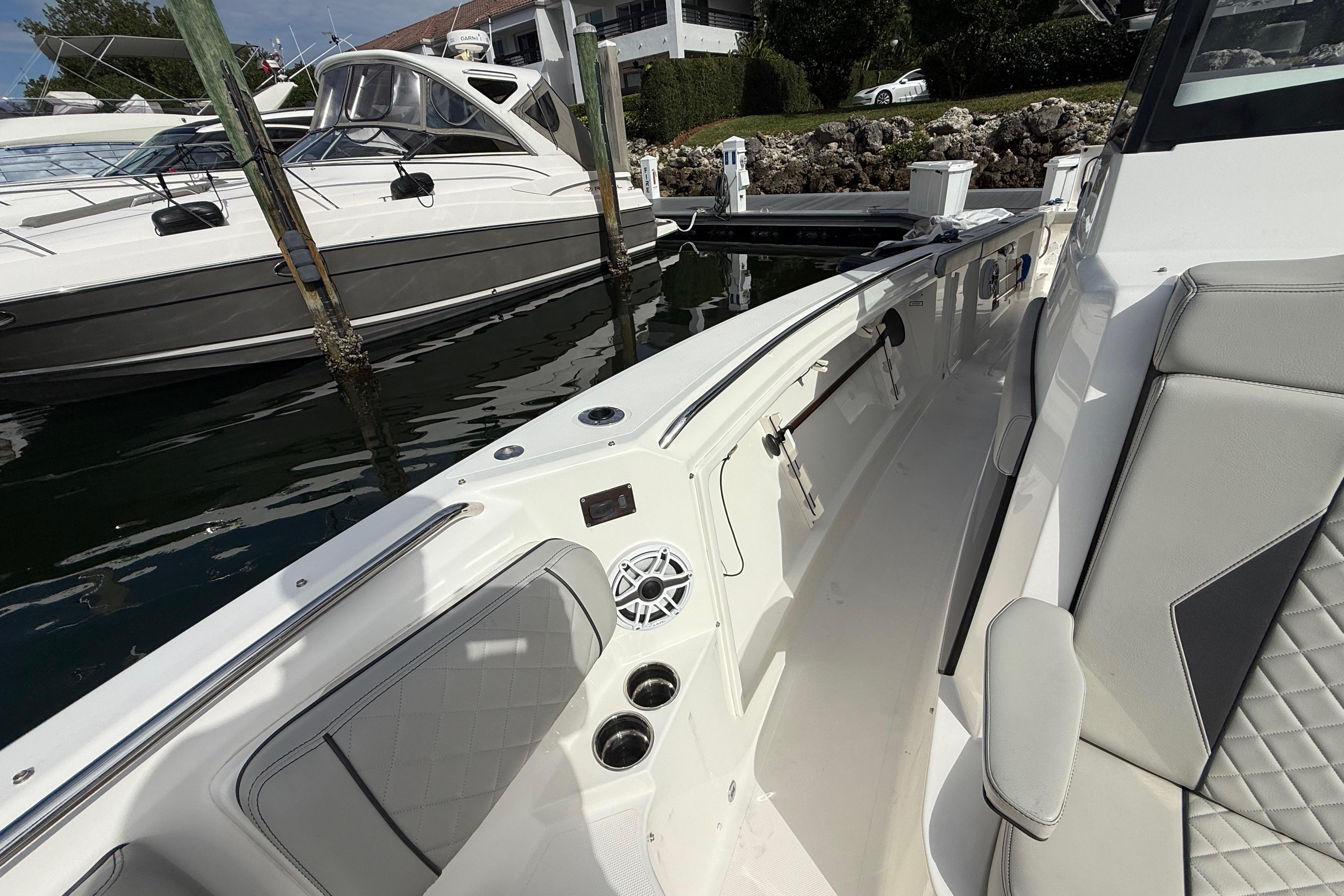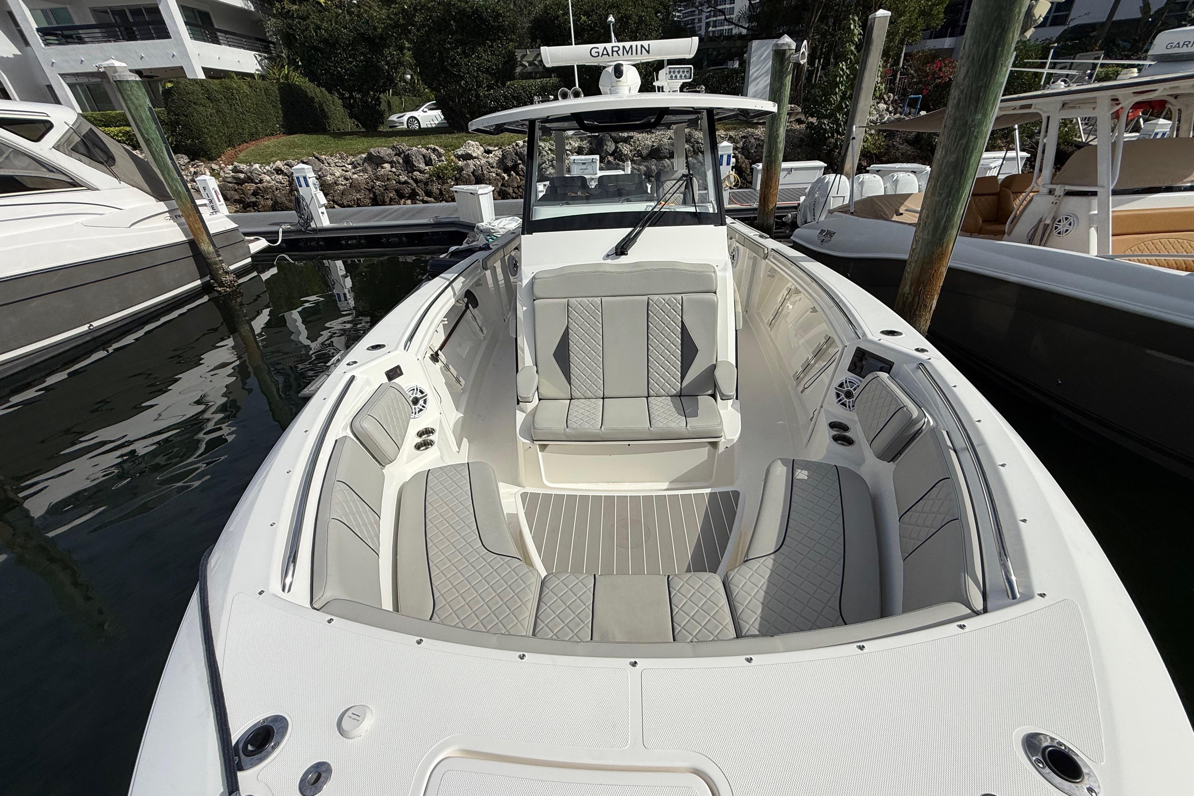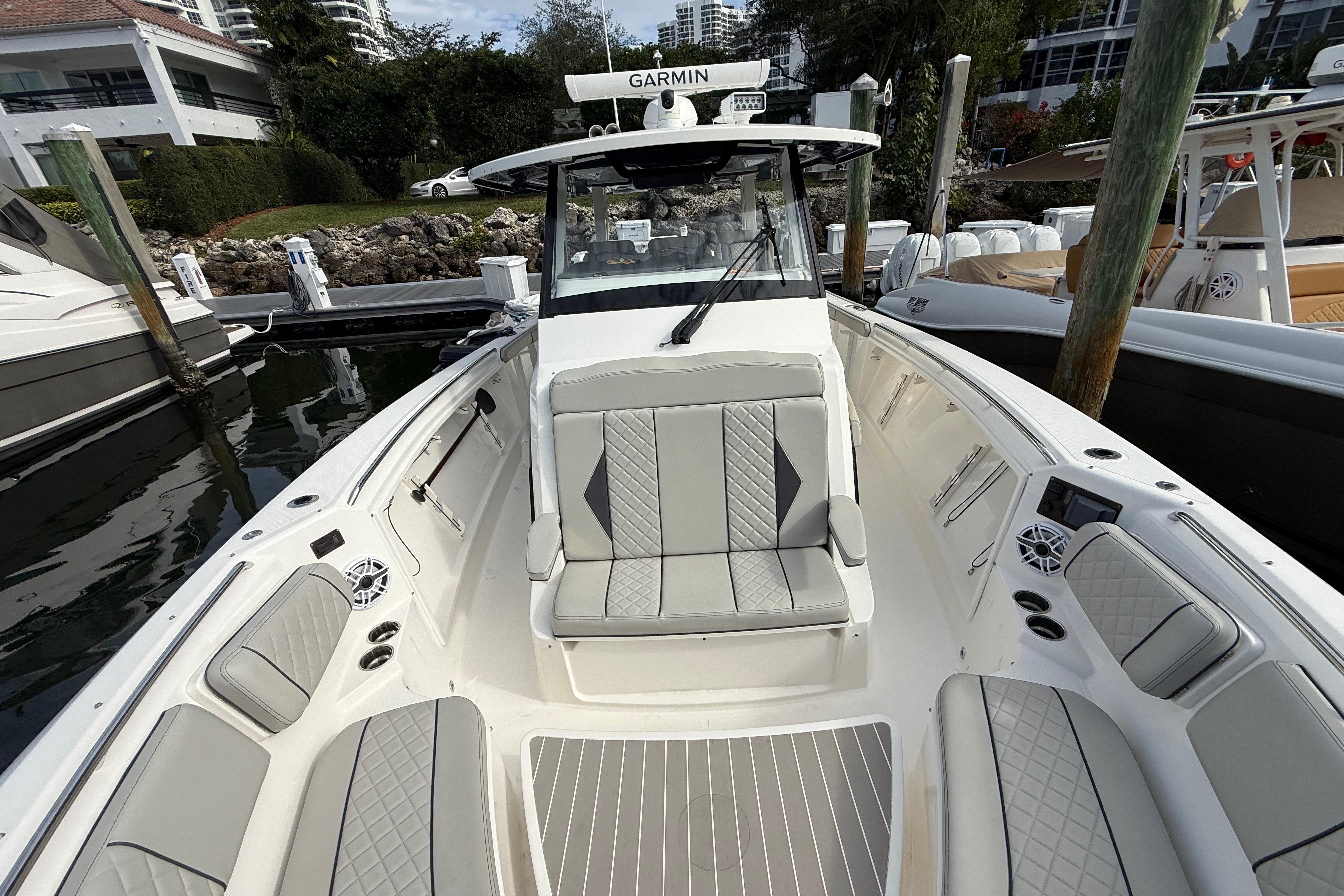 ~The 2022 Pursuit S 358 Sport is a premium luxury center console that blends offshore fishing capability with refined cruising comfort. Built with Pursuit’s legendary craftsmanship, this model features a deep-V hull with a wide beam for exceptional stability, a spacious cockpit layout, and high-end finishes throughout. Ideal for serious anglers and families alike, the S 358 delivers performance, safety, and versatility in a beautifully engineered package.~