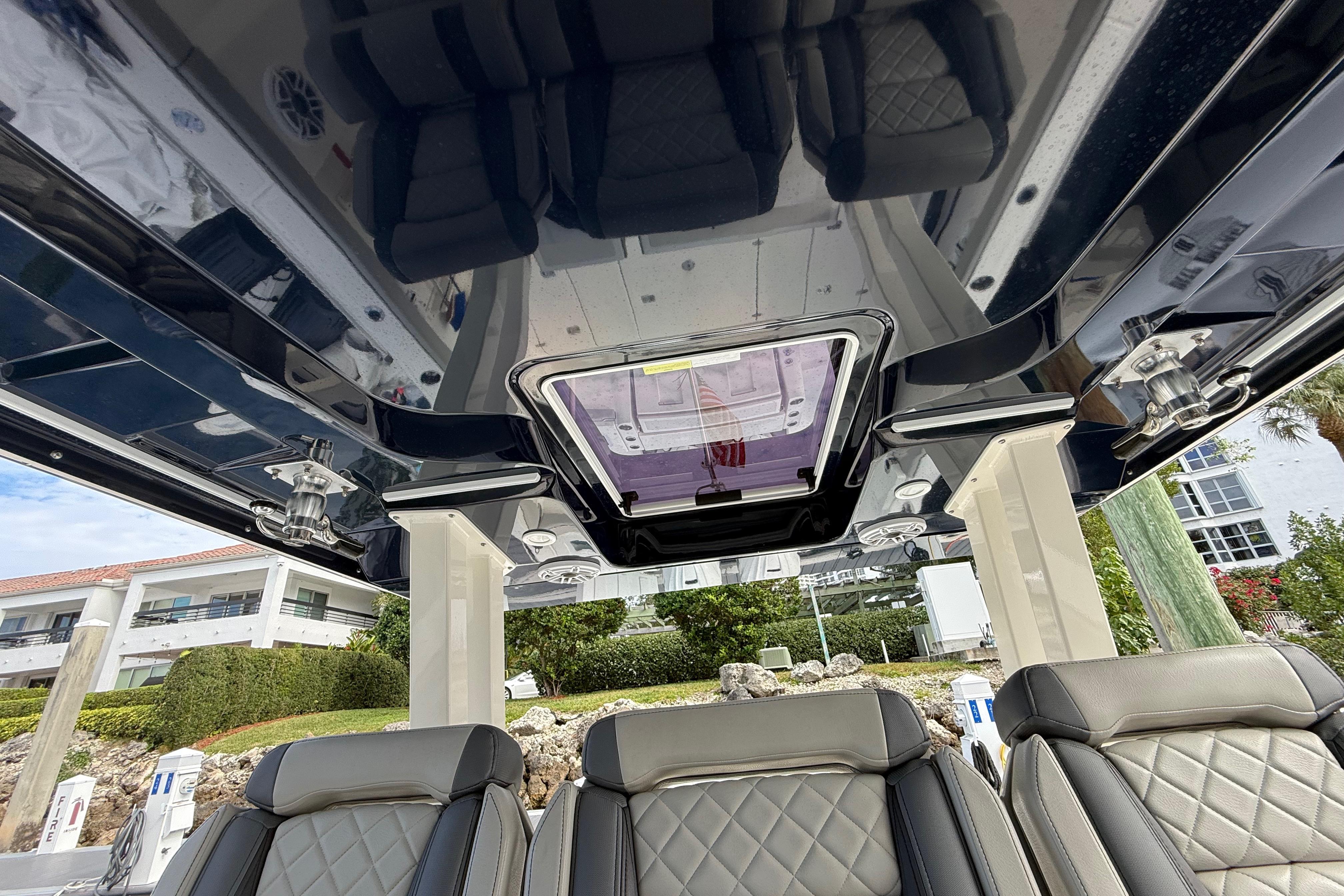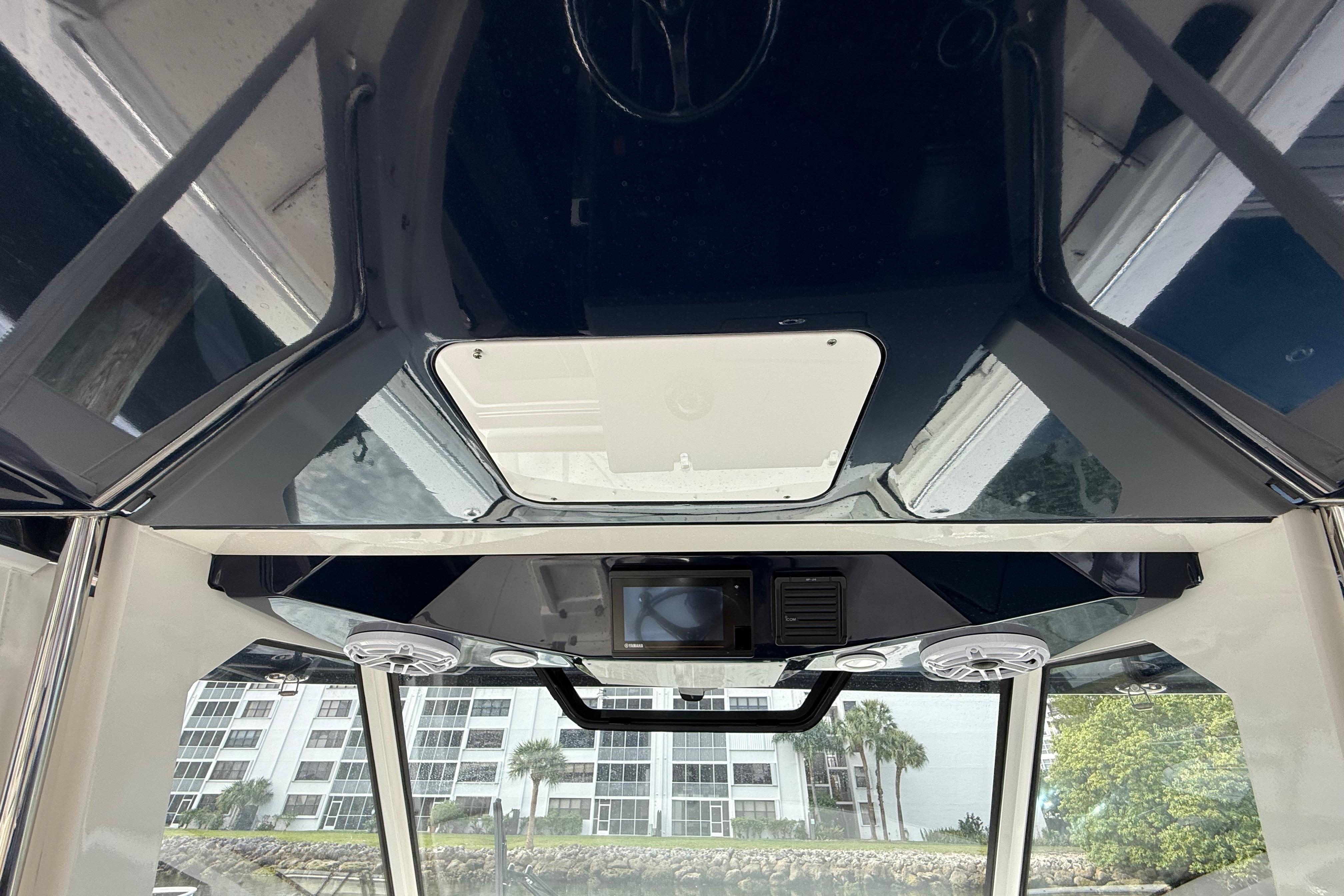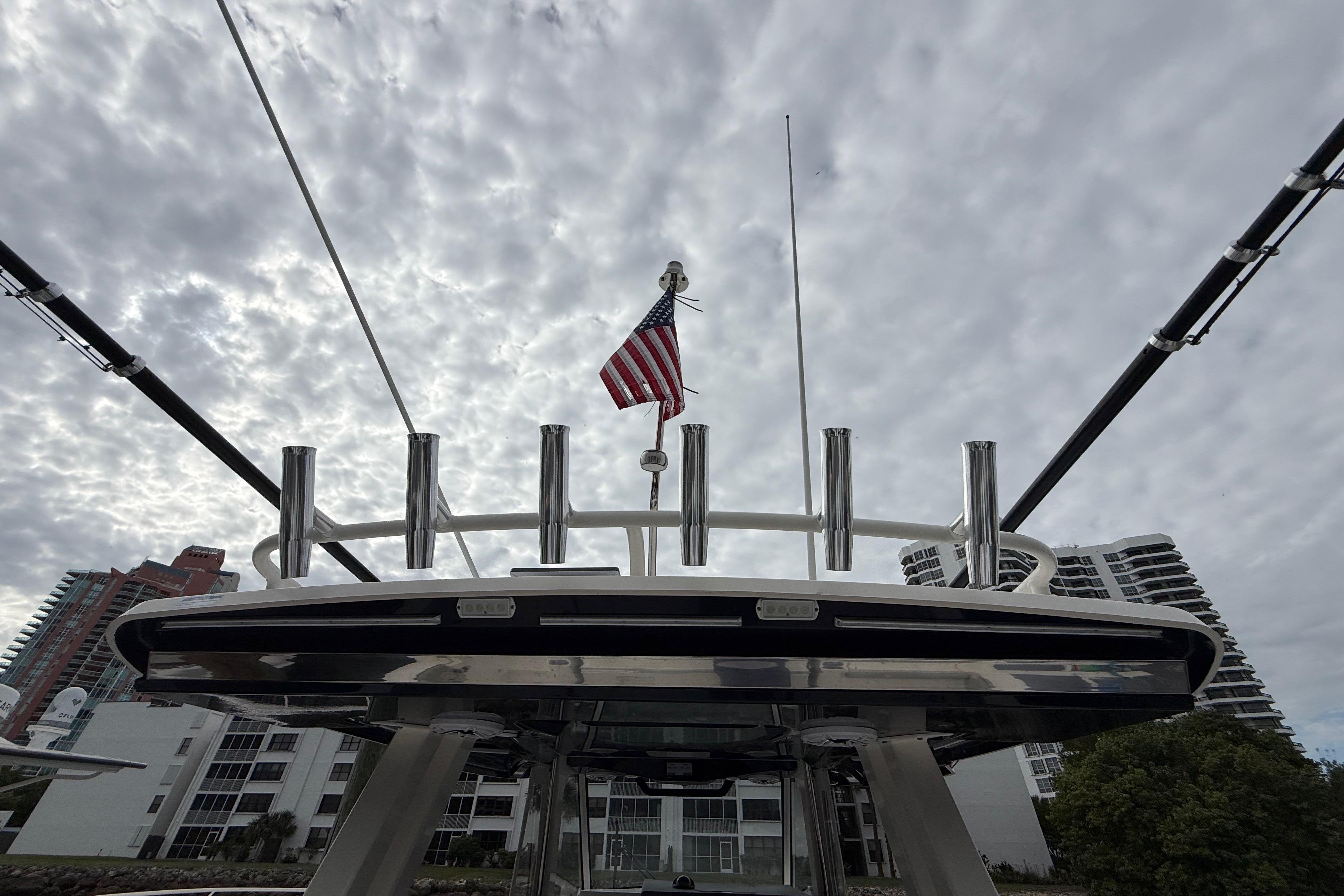 - Molded Fiberglass Full Beam Hardtop with Custom Sliding Access/Ventilation Hatch, Integral Grab Rails, Overhead Electronics Mounting Surface, Life Vest Storage, and Dedicated Locations for Outriggers and Electronics