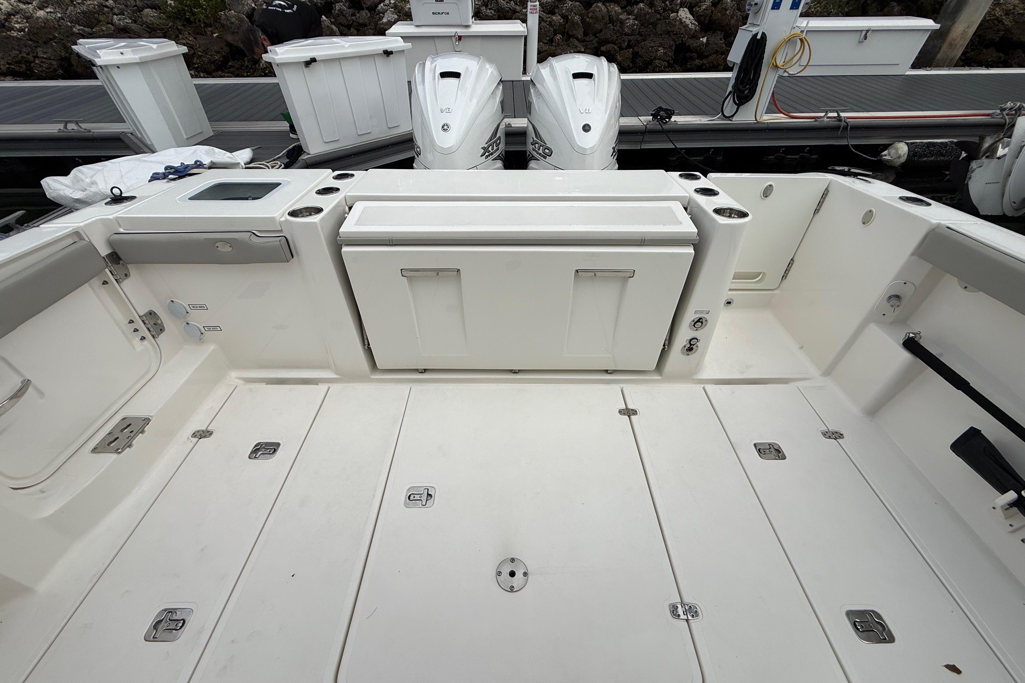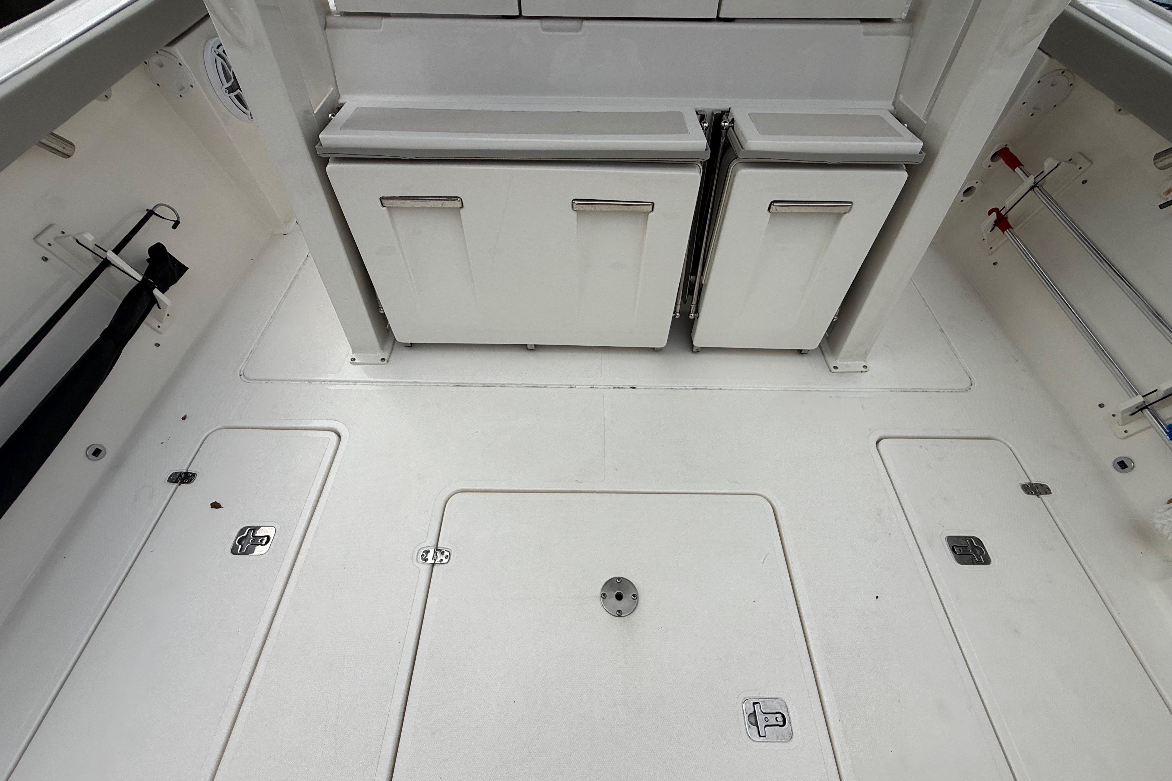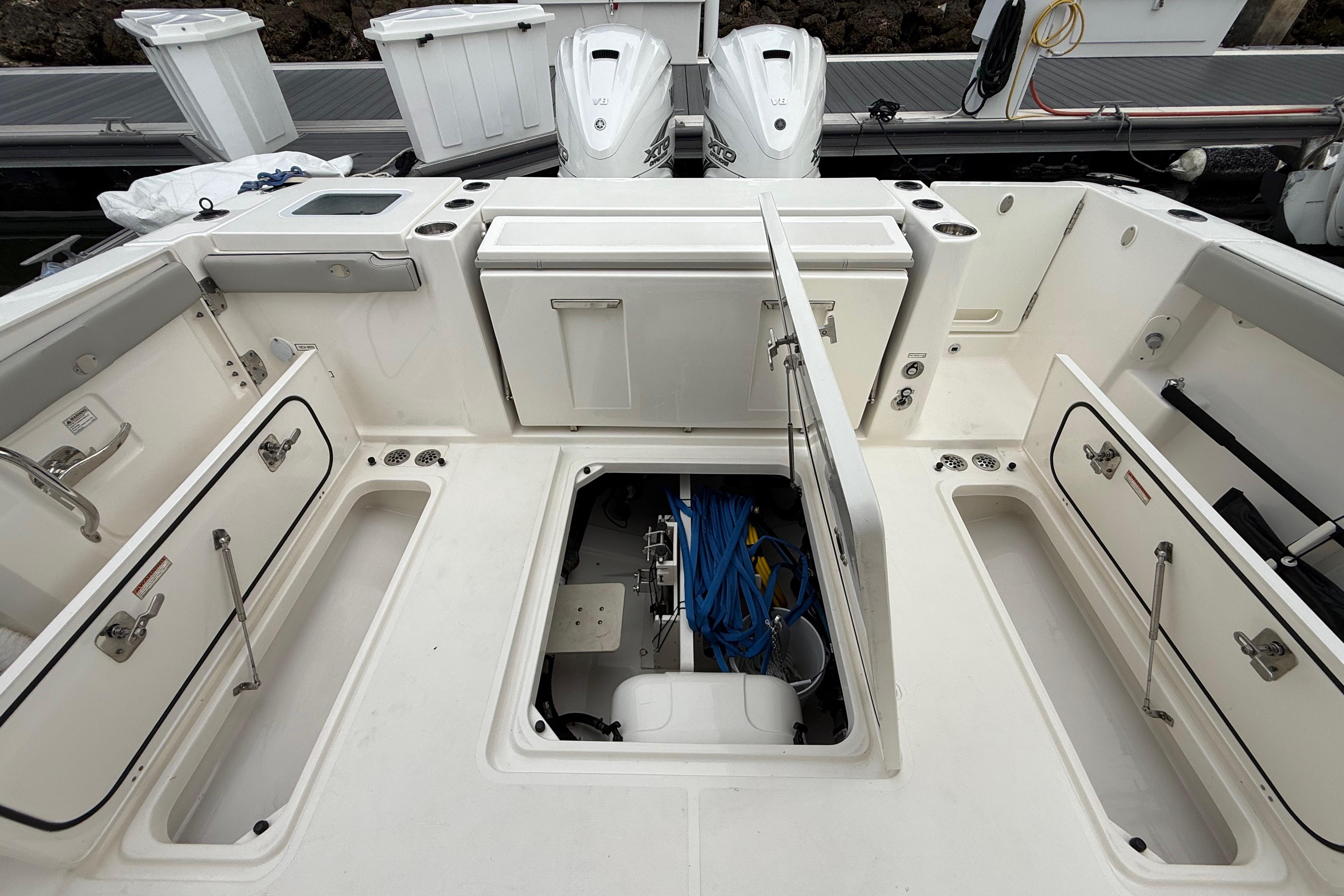 - Fish Boxes, In-Floor (port & starboard, 27 gallons each) with Molded Foam Insulation and Independent Diaphragm Discharge Pumps