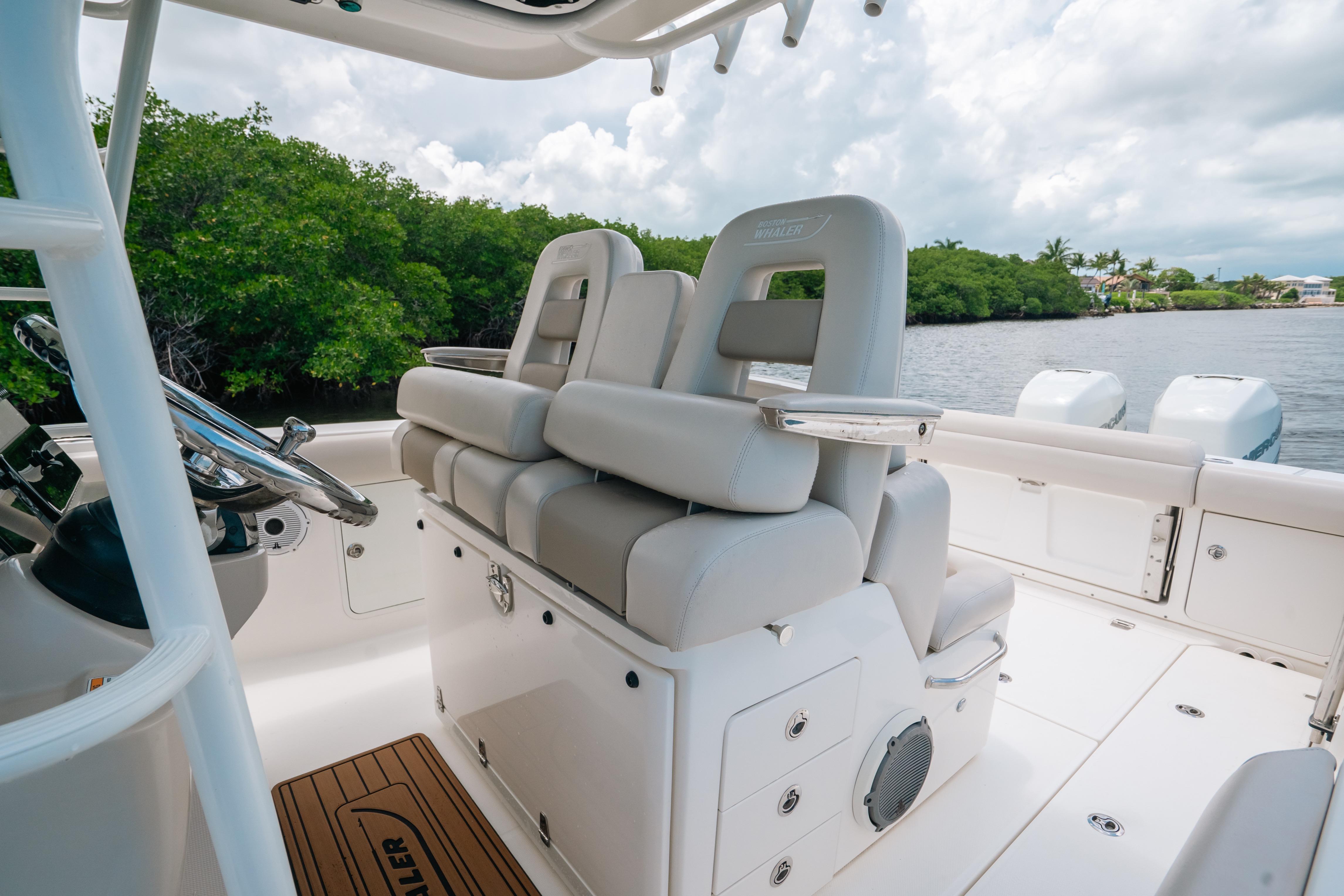 This 2019 Boston Whaler 330 Outrage is turn-key and ready for its new owner. Powered by Twin Mercury Verado 350hp with low hours. The 330 Outrage is an outstanding saltwater performer, built on a foundation of core confidence. Boston Whaler’s precision-engineered design delivers a smooth, dry, comfortable ride—the optimal balance of stability and softness. Handling is beautifully predictable with seamless control, giving you ease and confidence like you’ve never felt before. Fishing features and options galore, including numerous comfort-minded amenities for you and your guests, make the 330 perfect for entertaining and whatever offshore adventures you dream up.