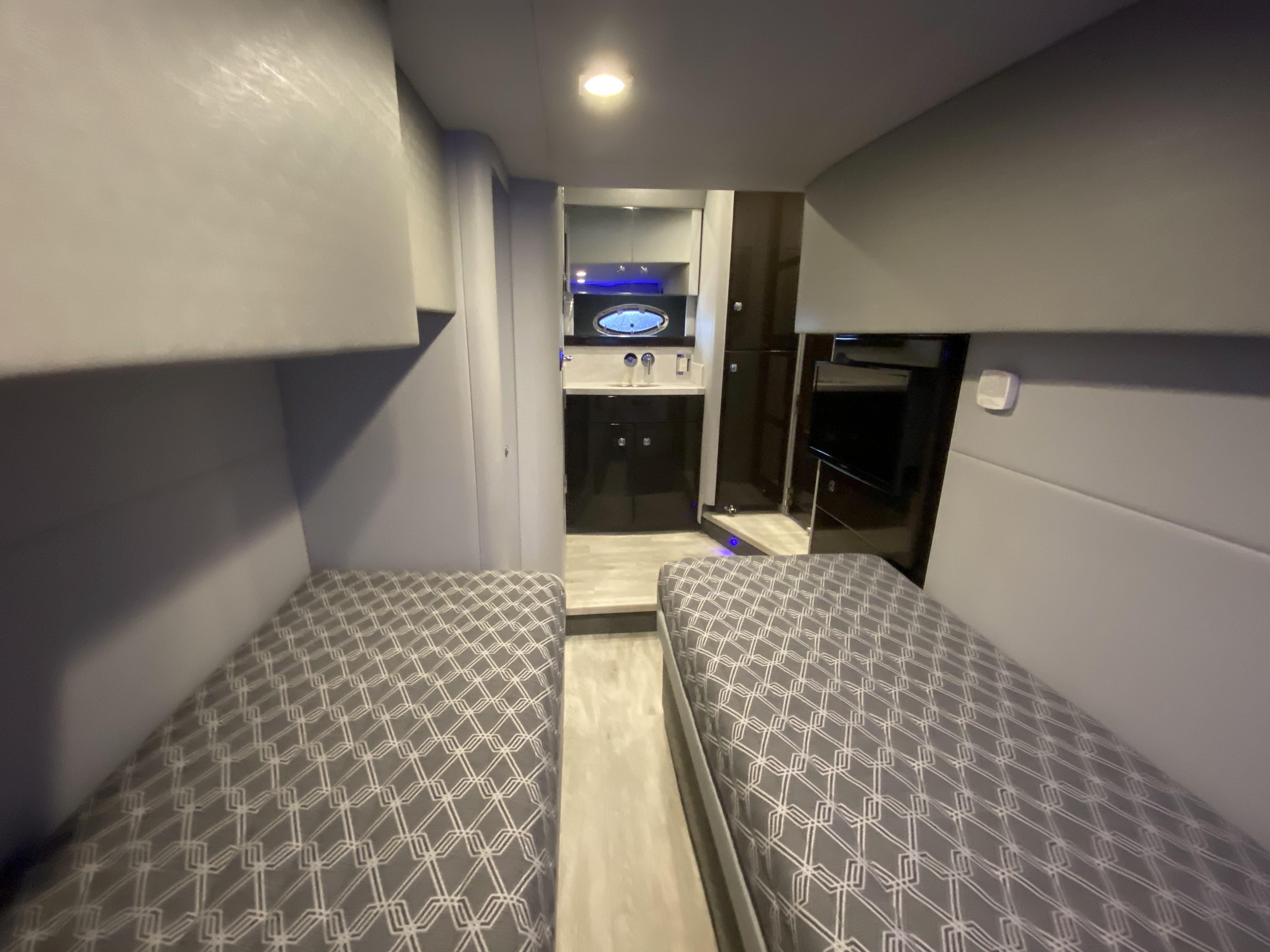 - Private guest stateroom w/twin beds–adjust to queen bed w/hideaway filler cushions