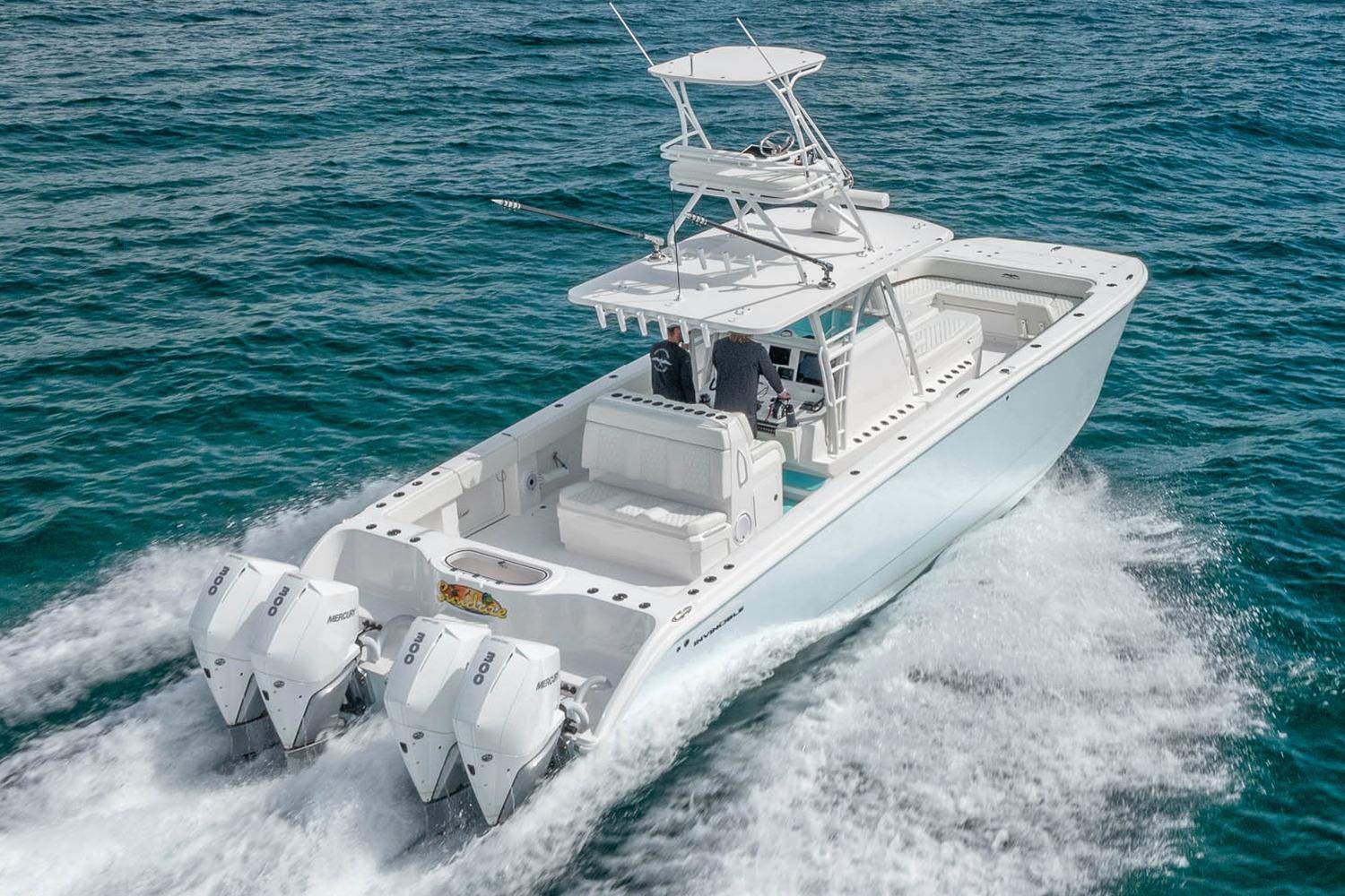 The 38’ Invincible Catamaran is designed for owners who demand long-range capability, offshore confidence, and efficiency in open-ocean Pacific conditions. Built on Invincible’s advanced twin-stepped catamaran hull and powered by twin outboards, this vessel offers a smooth, controlled ride with excellent fuel economy and redundancy for extended offshore runs.