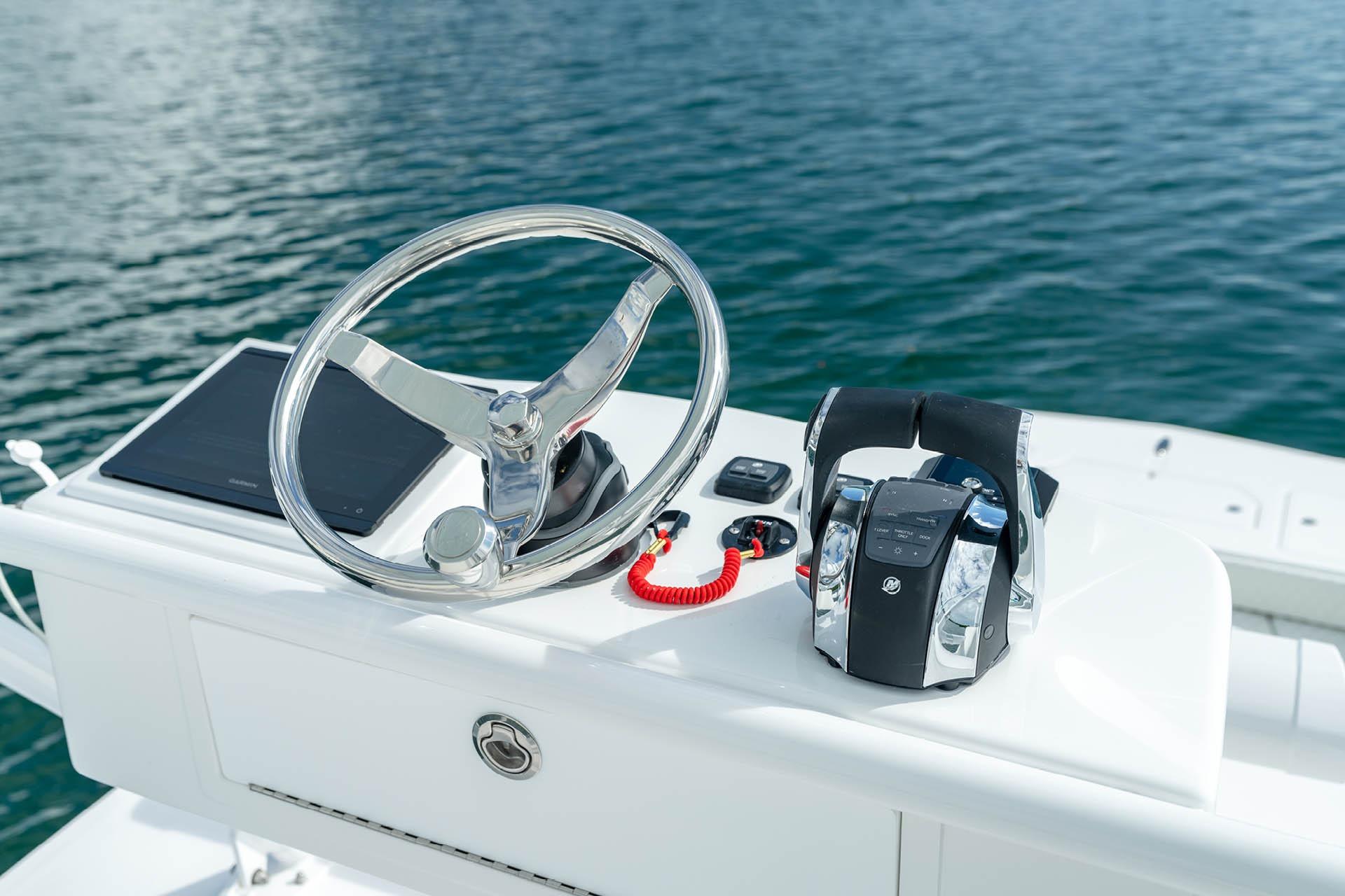 The helm is configured to support advanced Garmin electronics, including GPS, radar, sonar, and autopilot, delivering precise navigation and situational awareness. Excellent sightlines, intuitive controls, and a balanced helm layout allow for confident, fatigue-free operation on long passages.