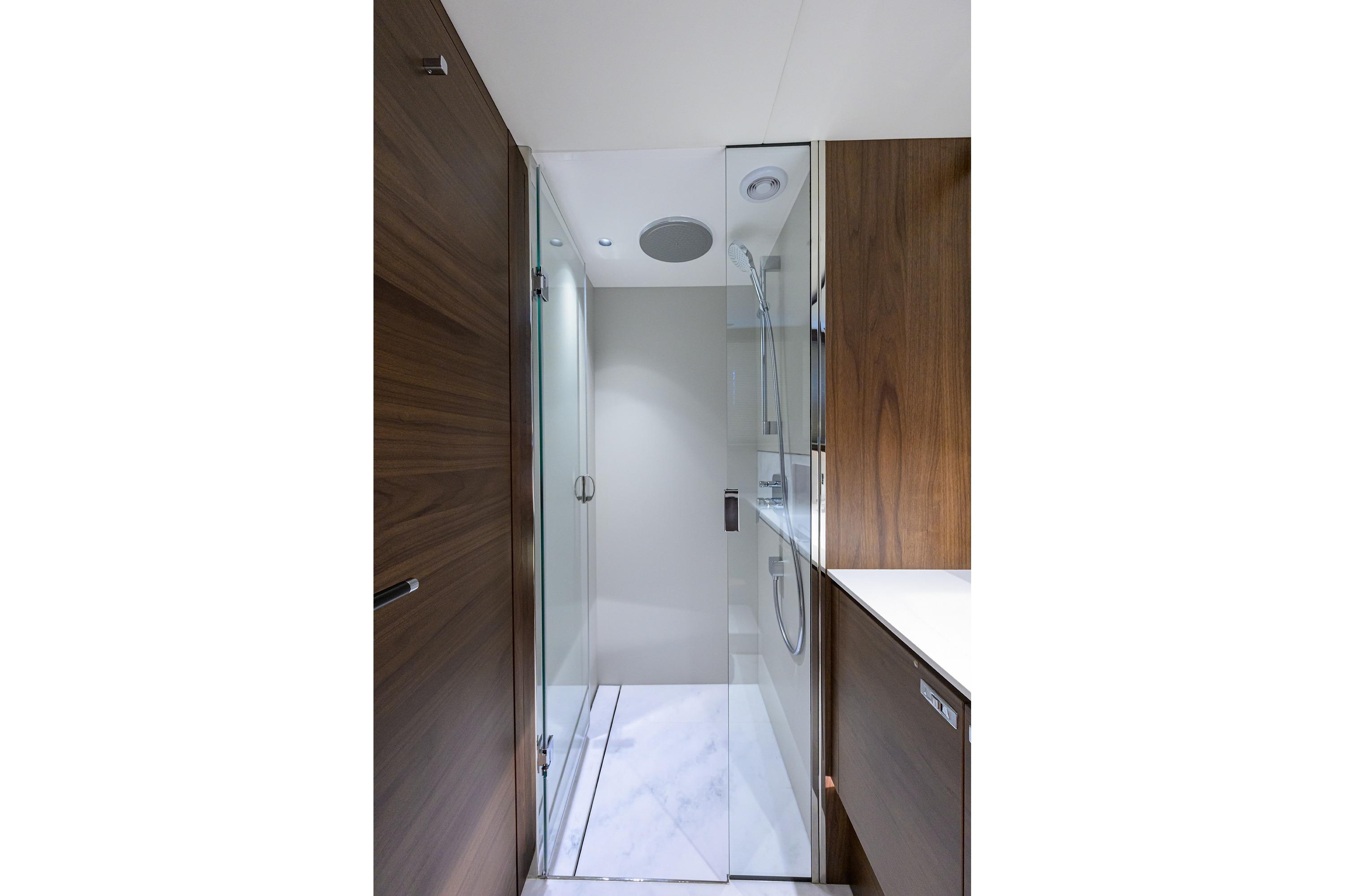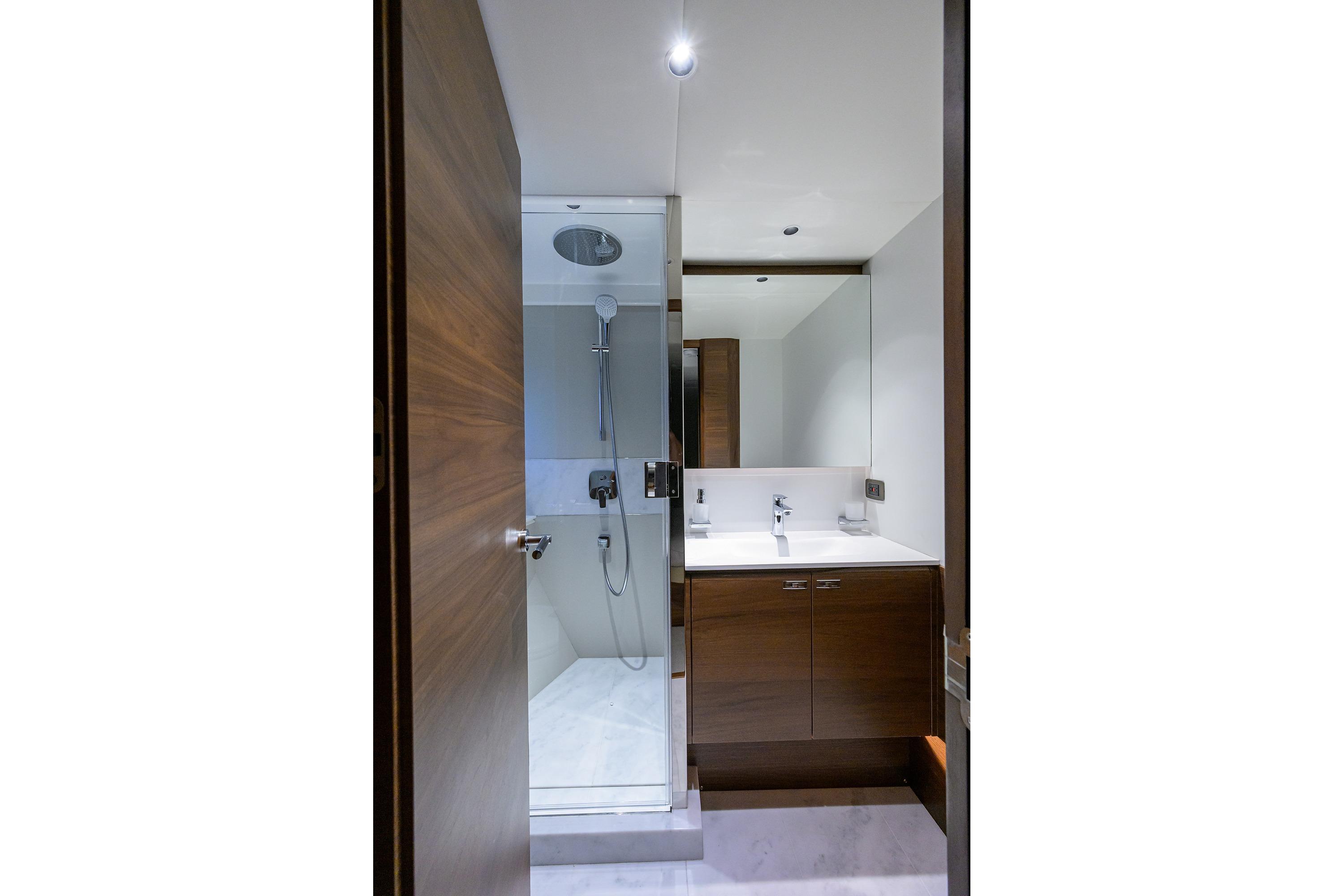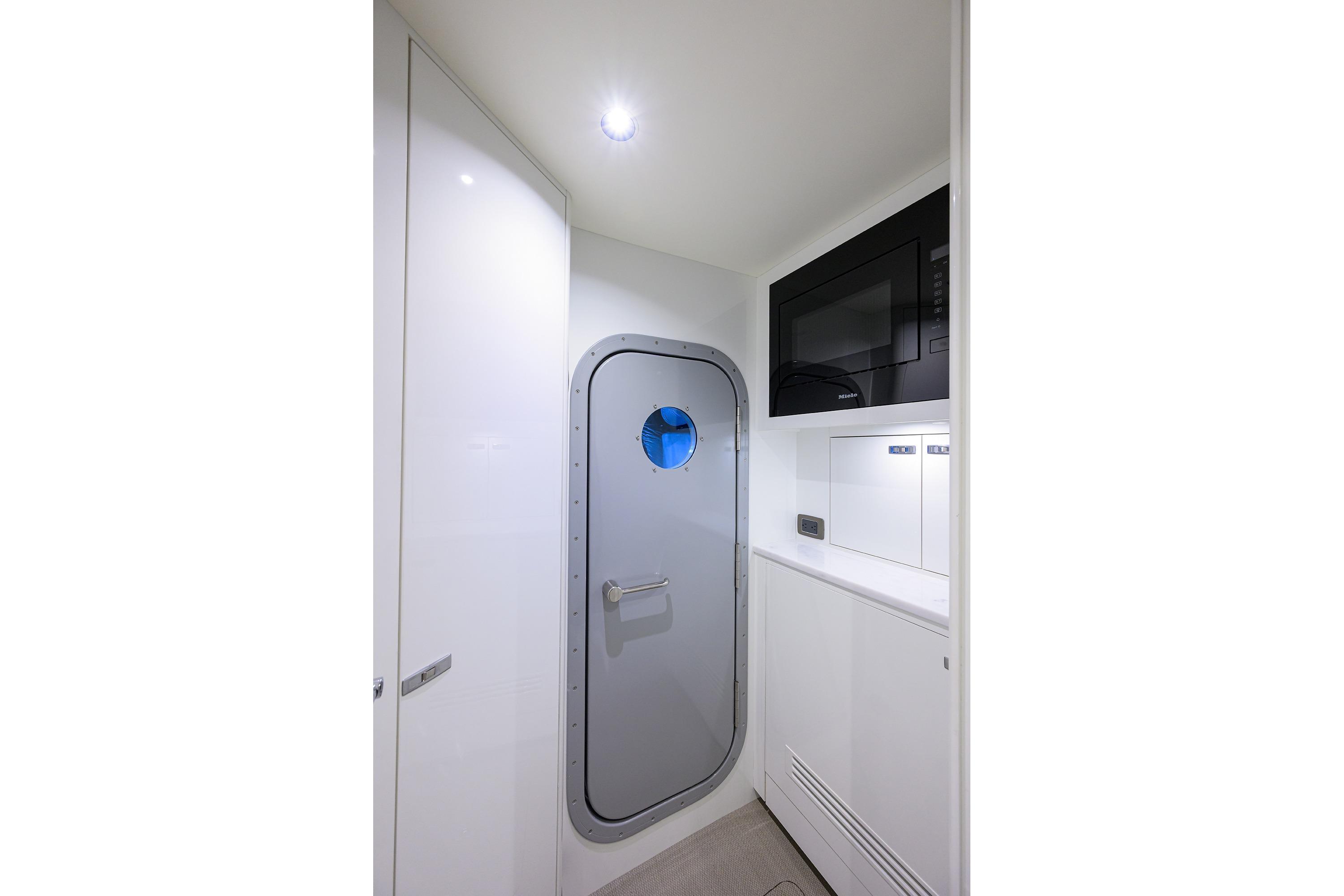 • Watertight pantograph door giving direct access to starboard side foredeck walkthrough area