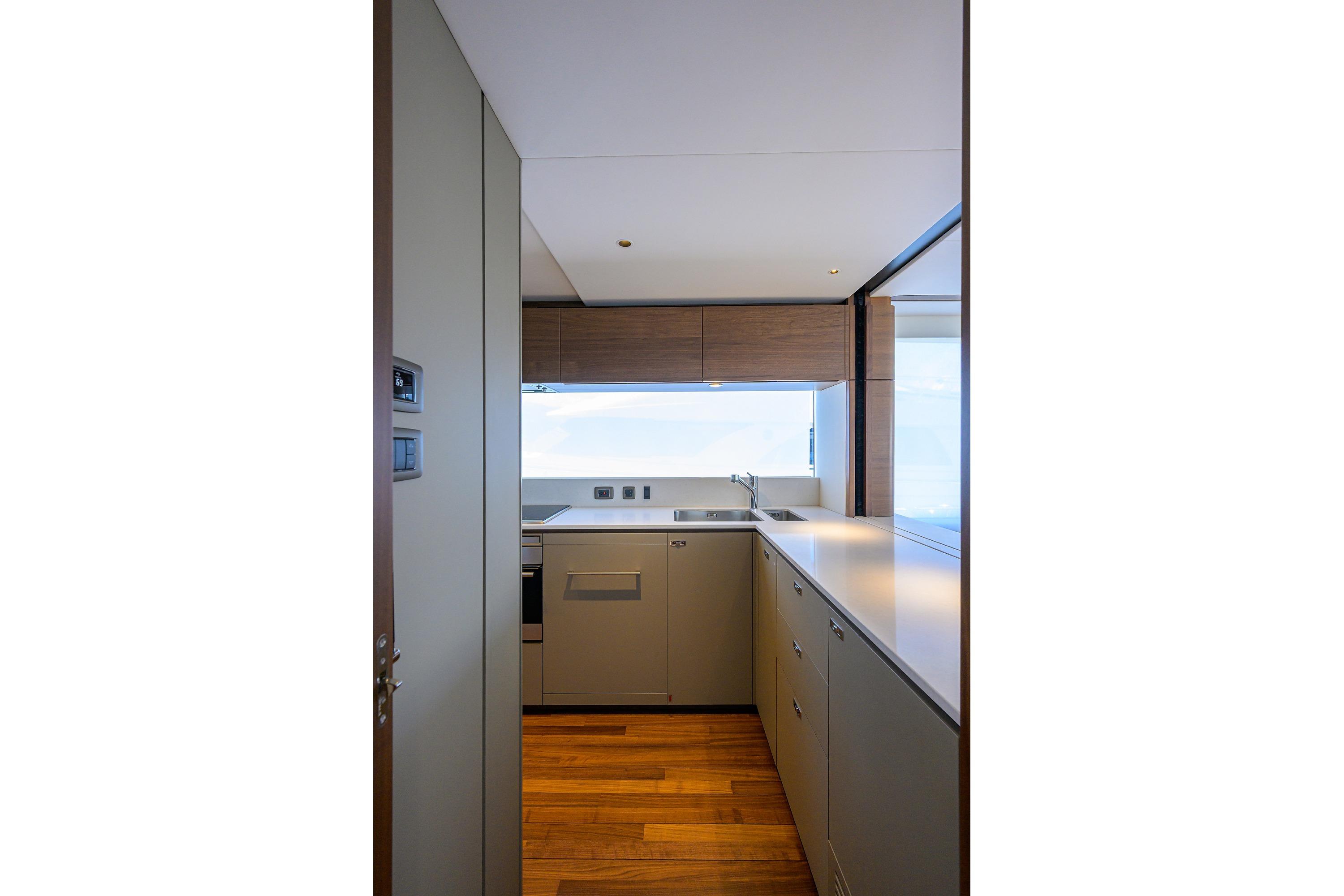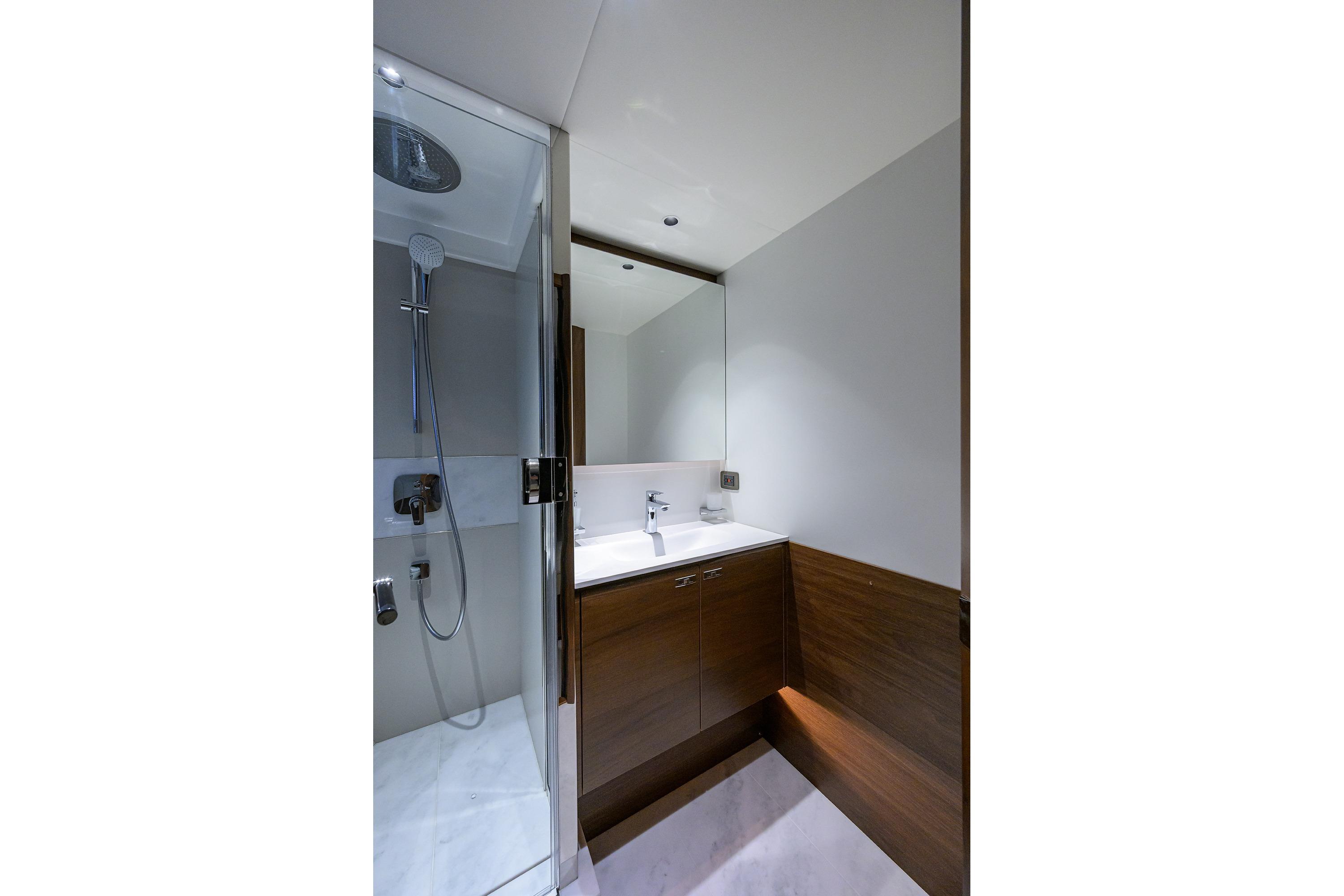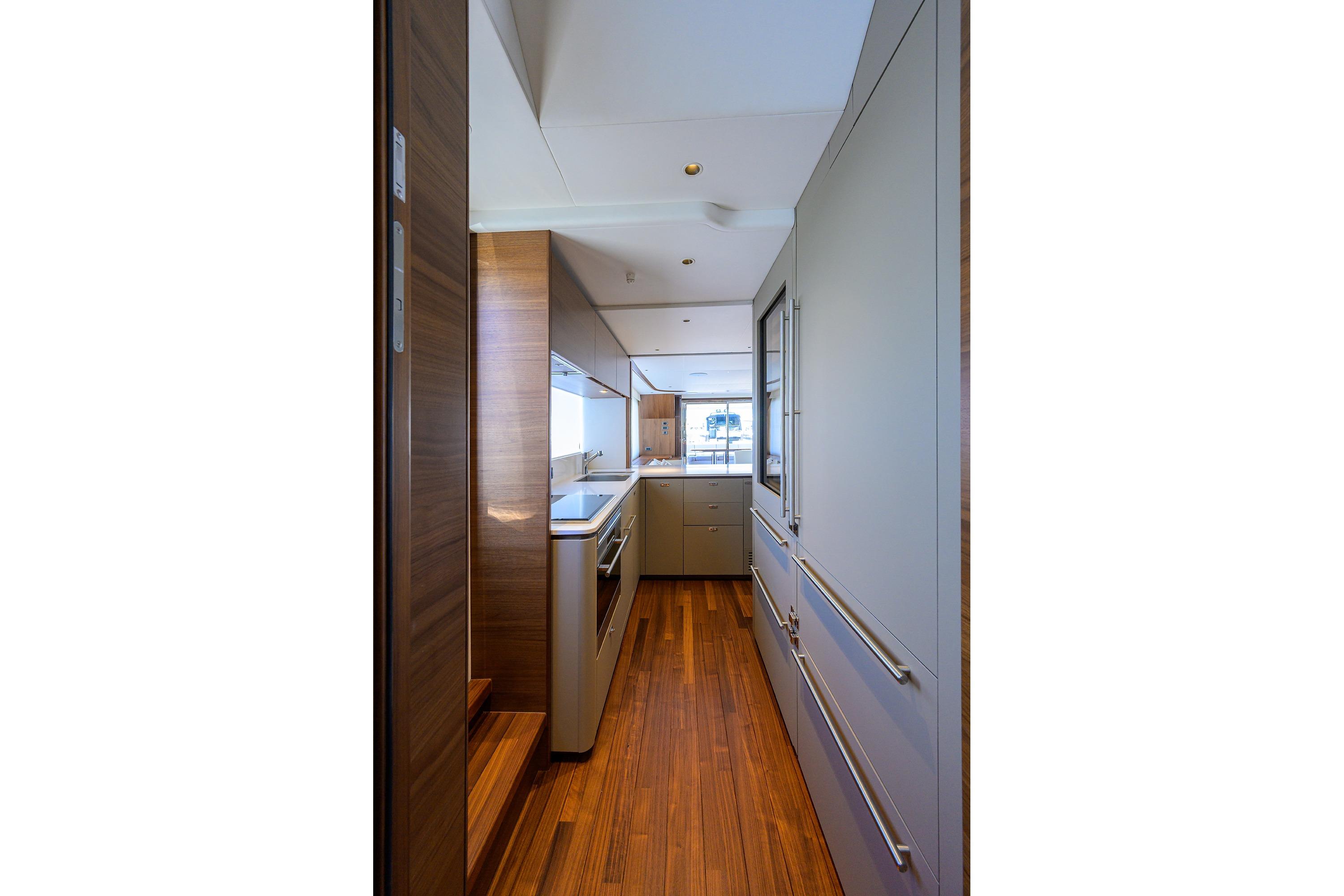 • Watertight pantograph door giving direct access to starboard side foredeck walkthrough area