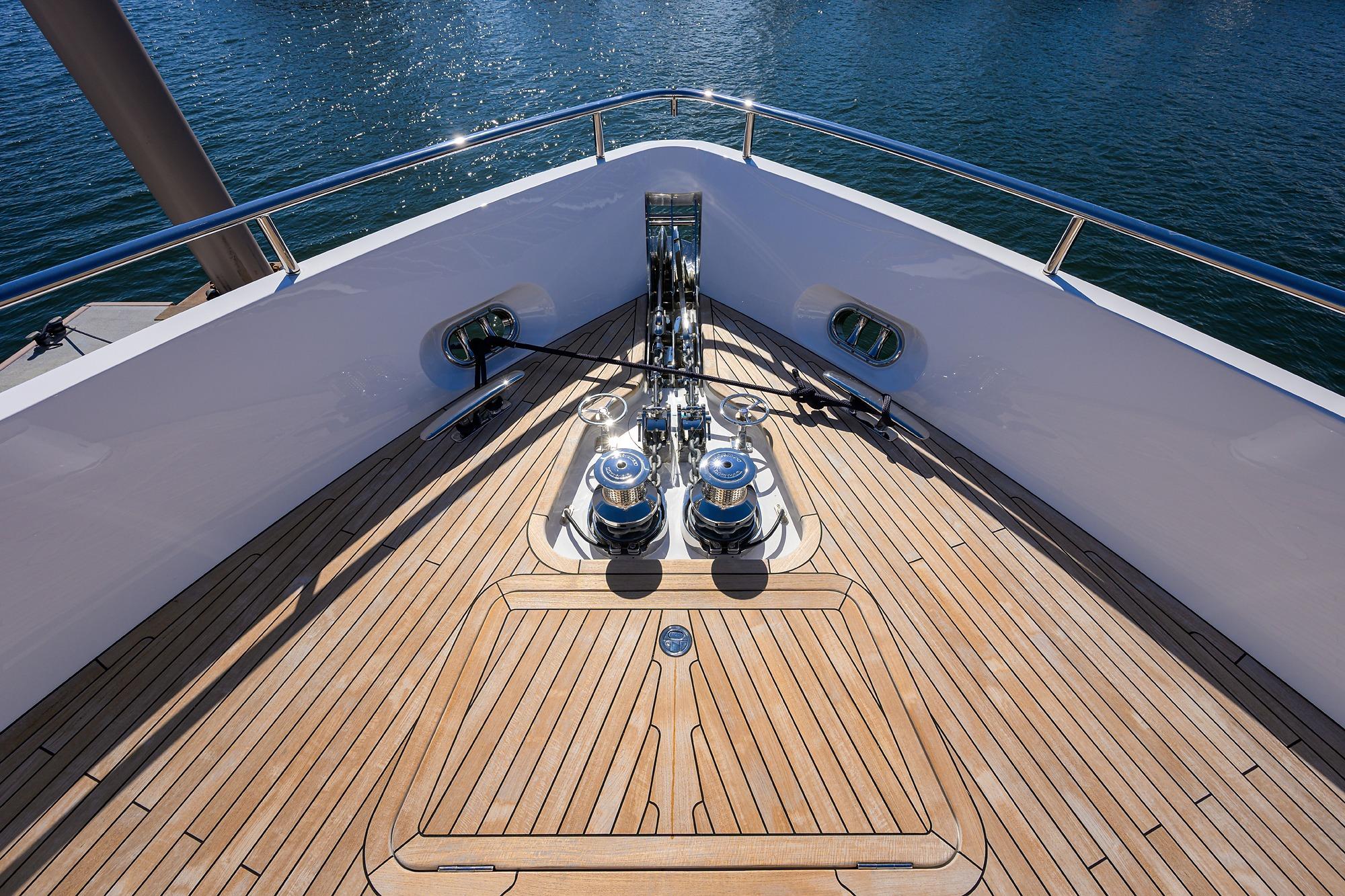 • Reversible hydraulic anchor winch with foredeck, main helm and flybridge controls