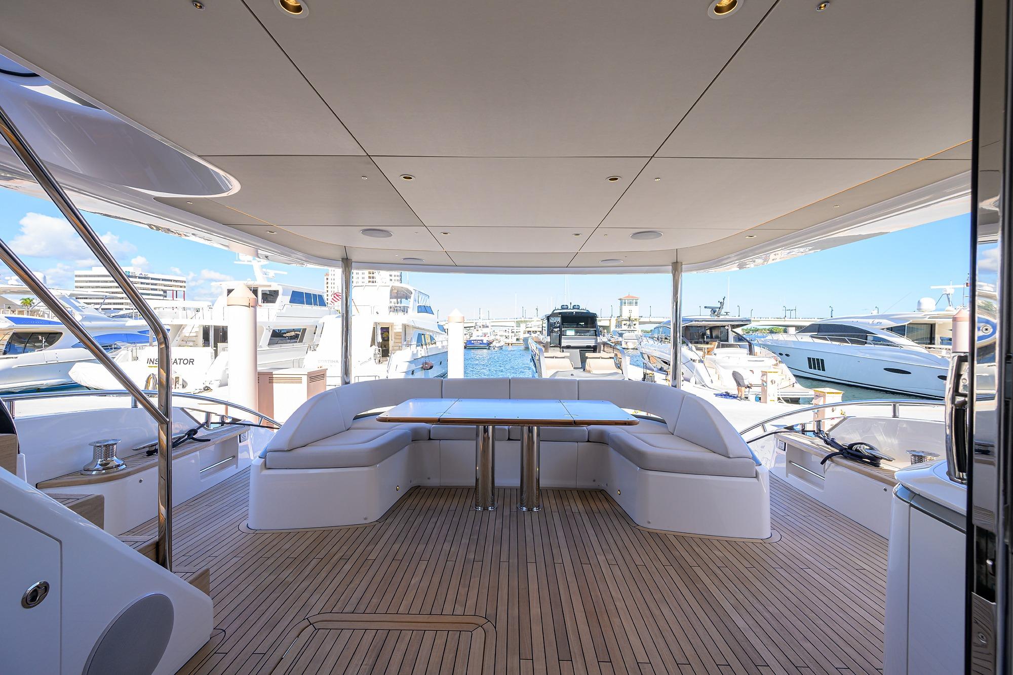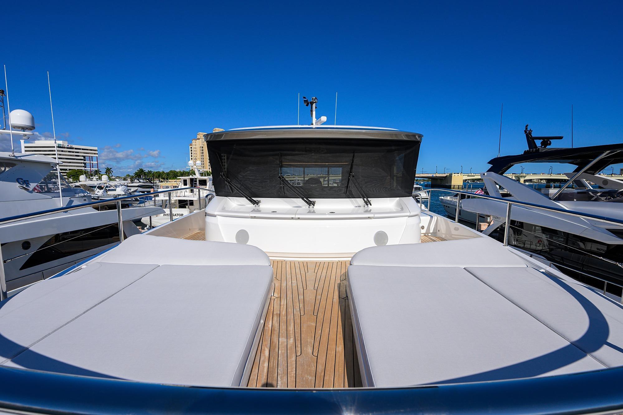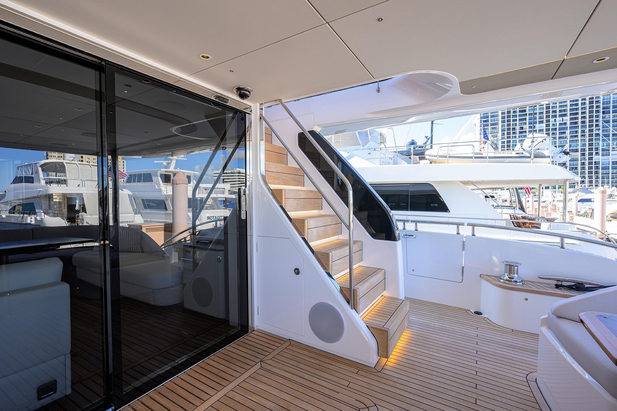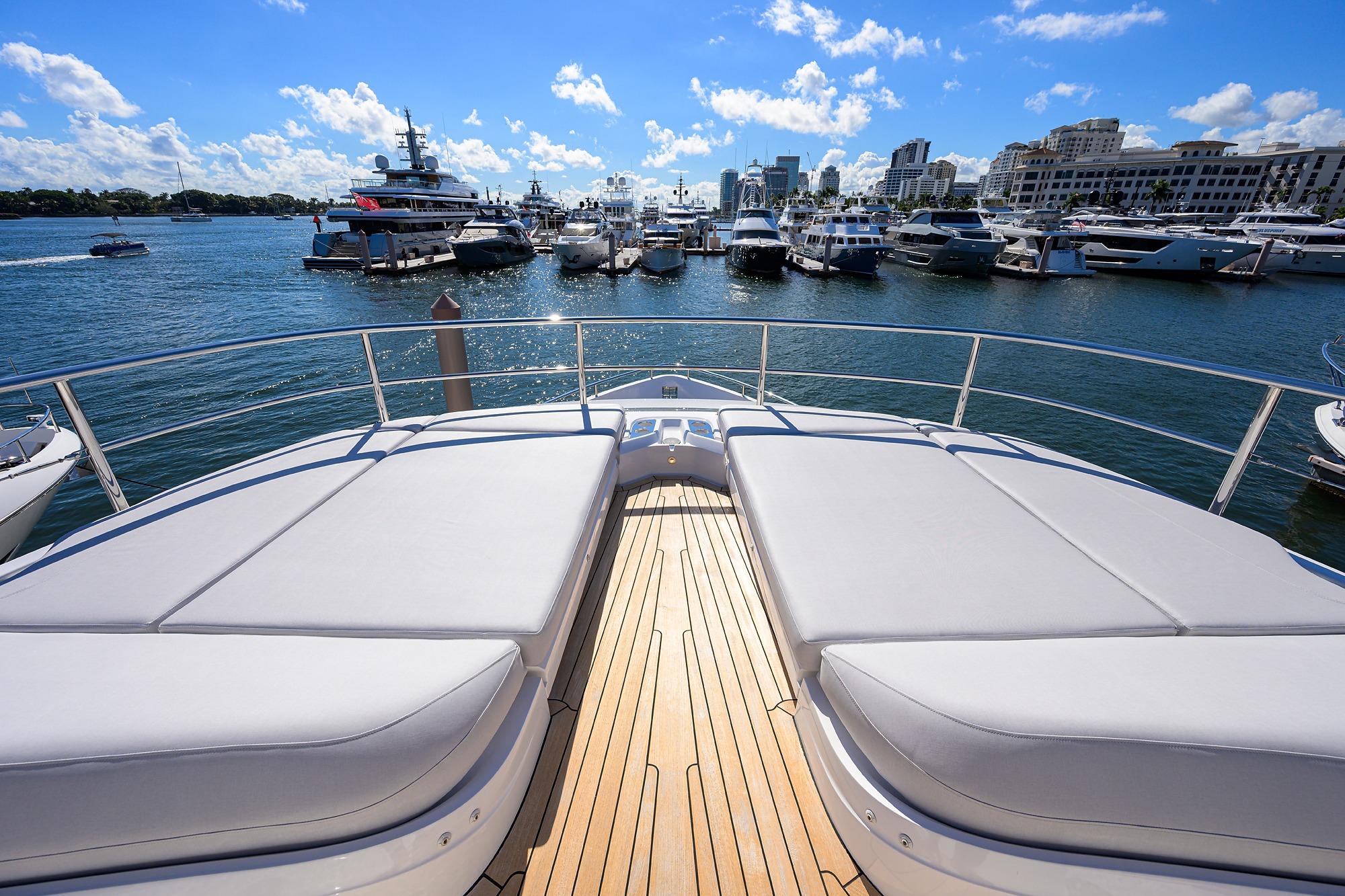 decks, steps to foredeck, flybridge aft sun deck and foredeck seating walkthrough