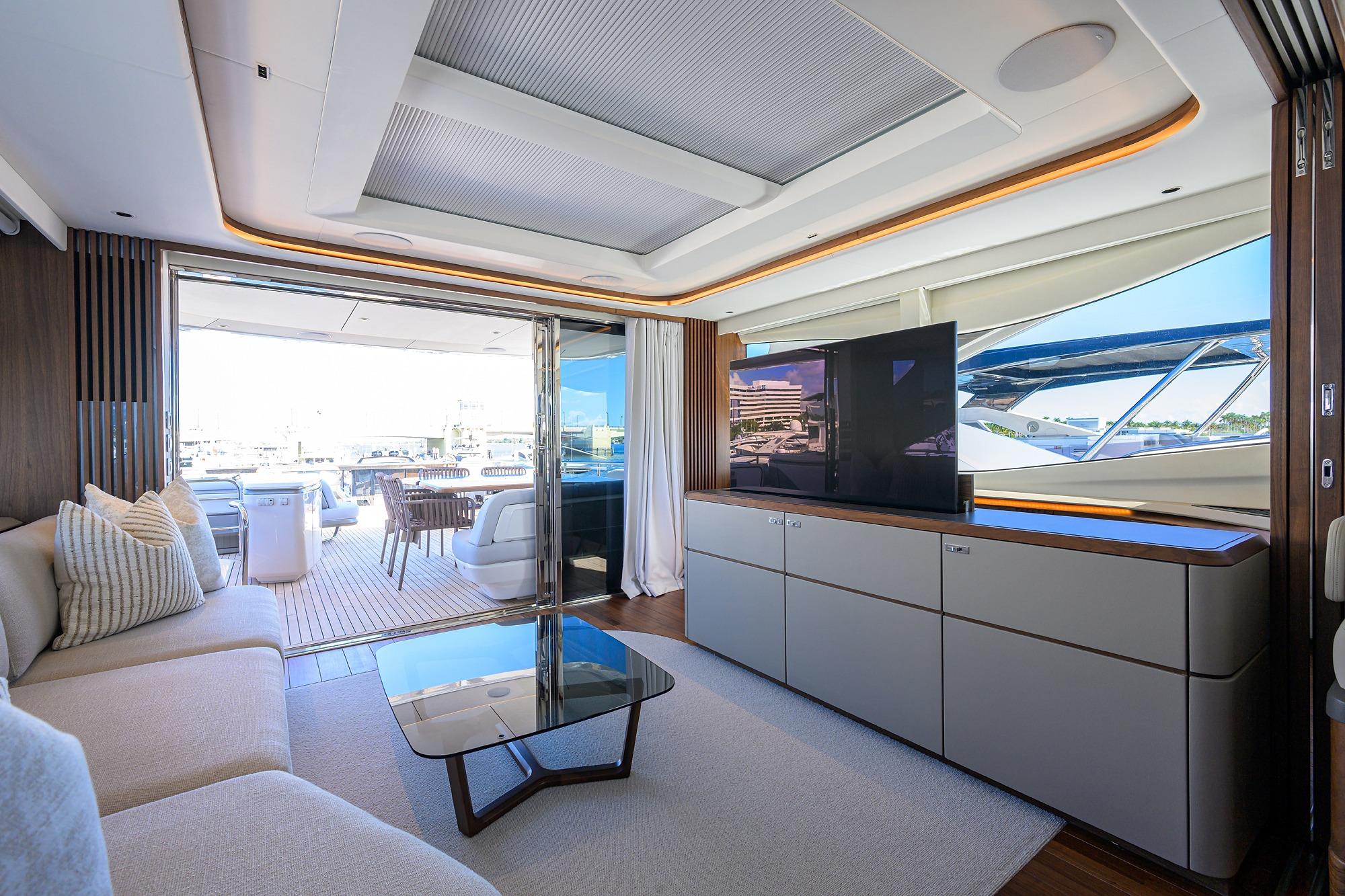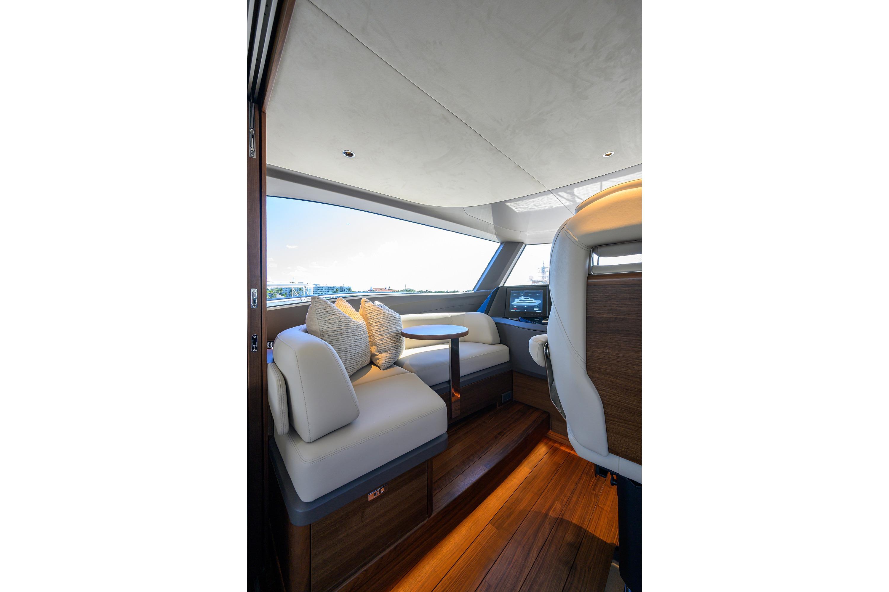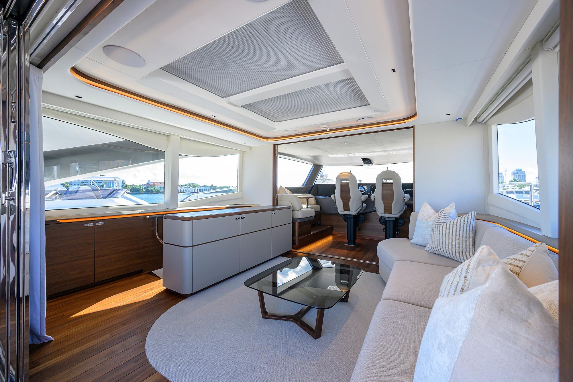 • Two stage sliding doors to fully enclose or open helm to skylounge area