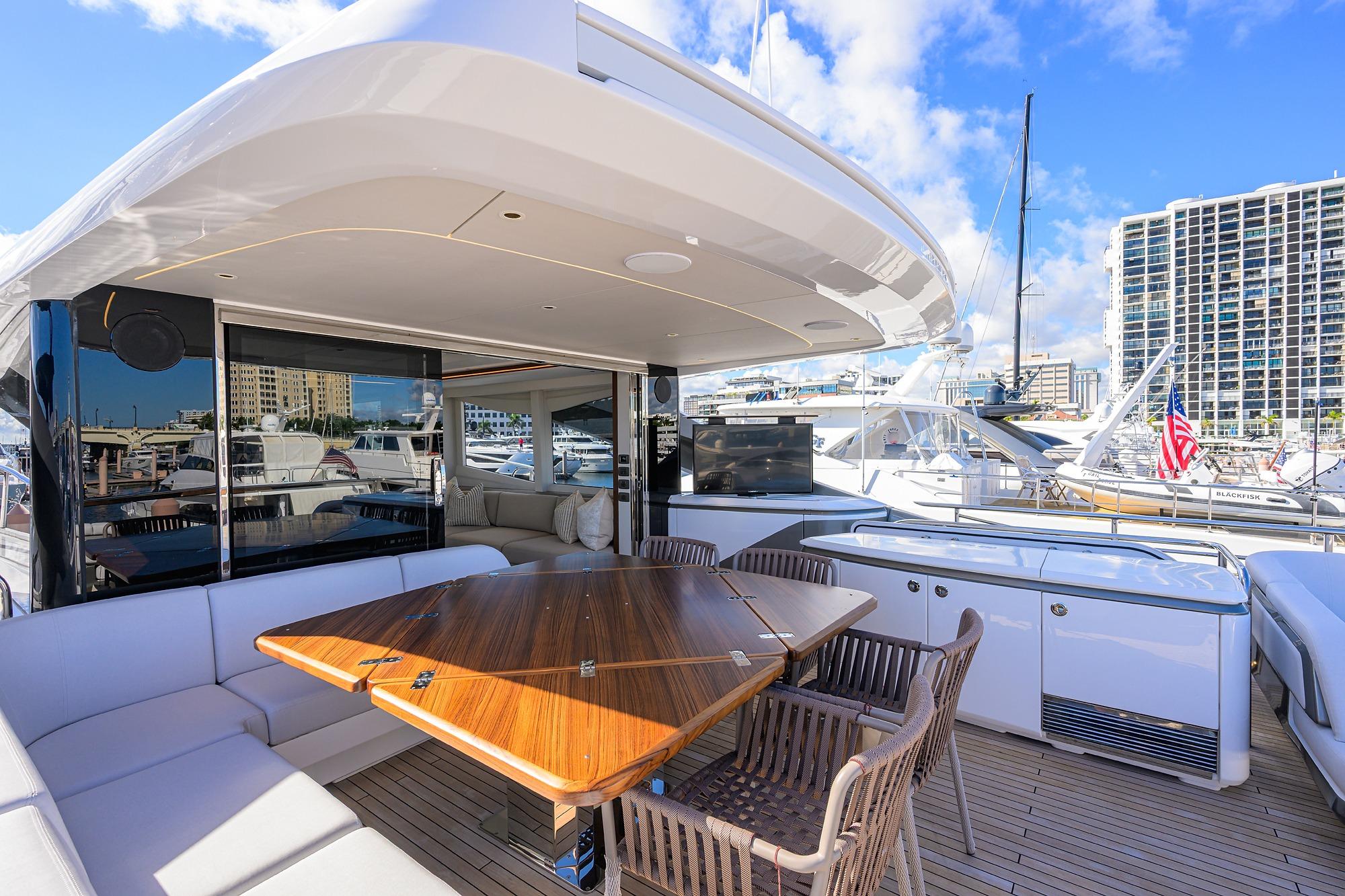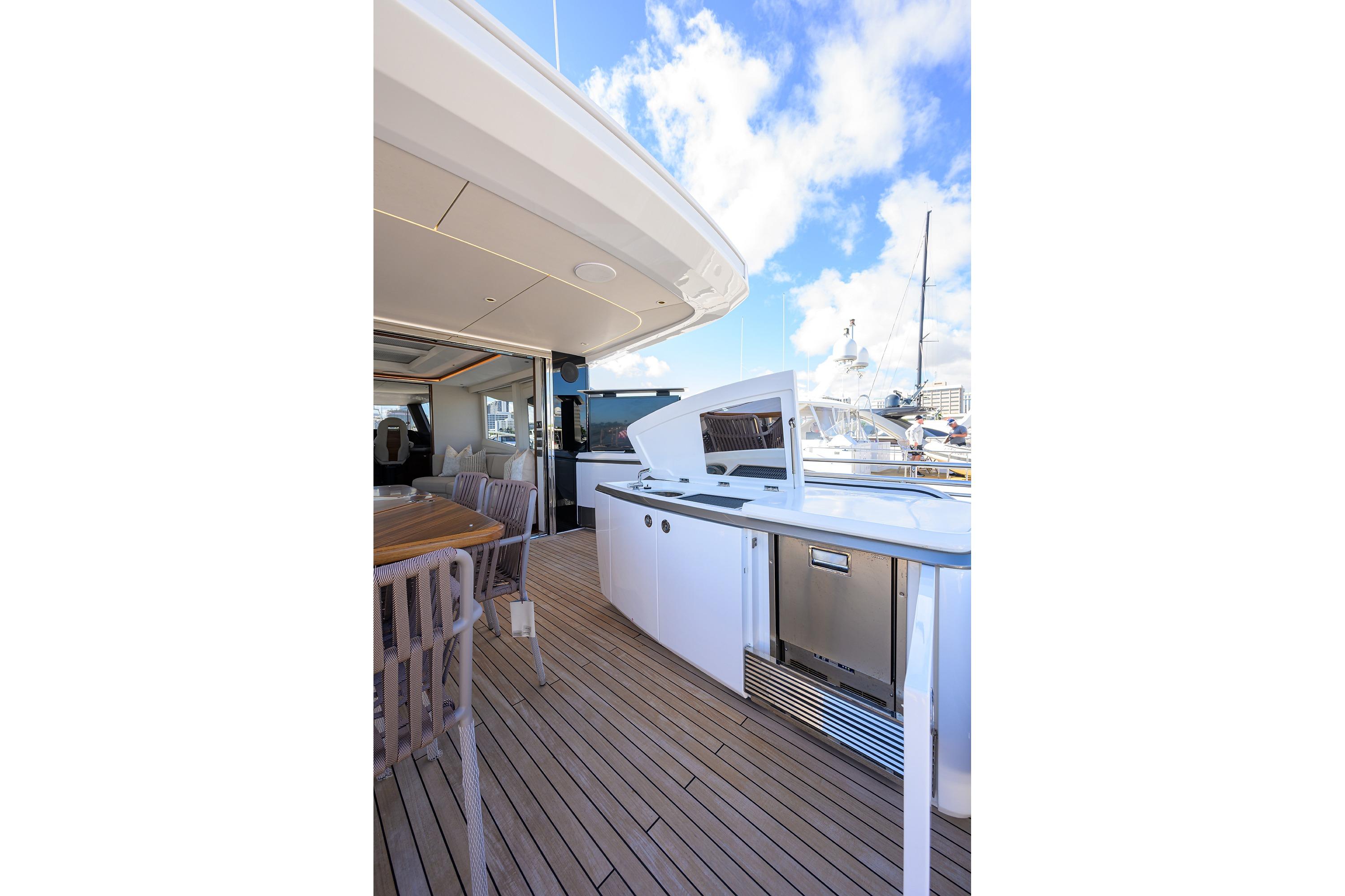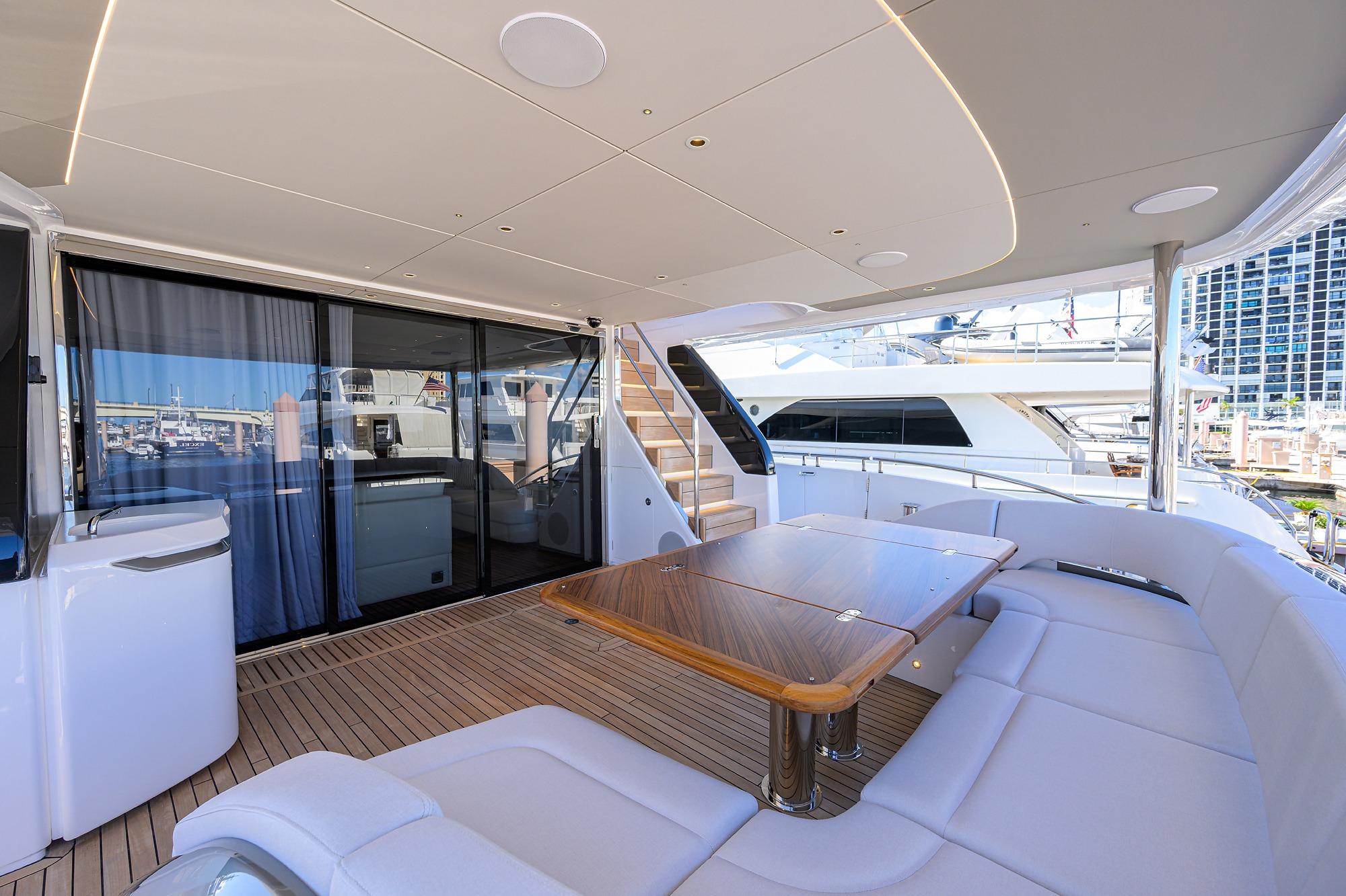 • Two stage sliding doors to fully enclose or open helm to skylounge area