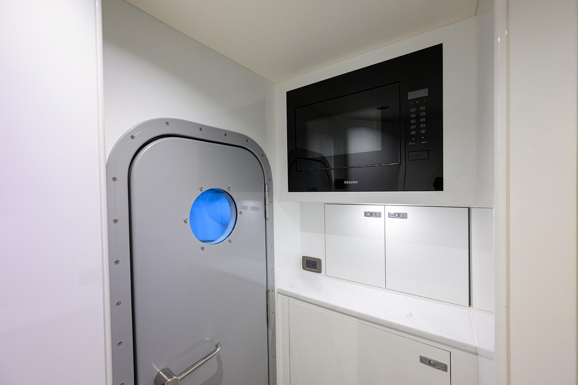 • Watertight pantograph door giving access from bathing platform into crew area/engine room