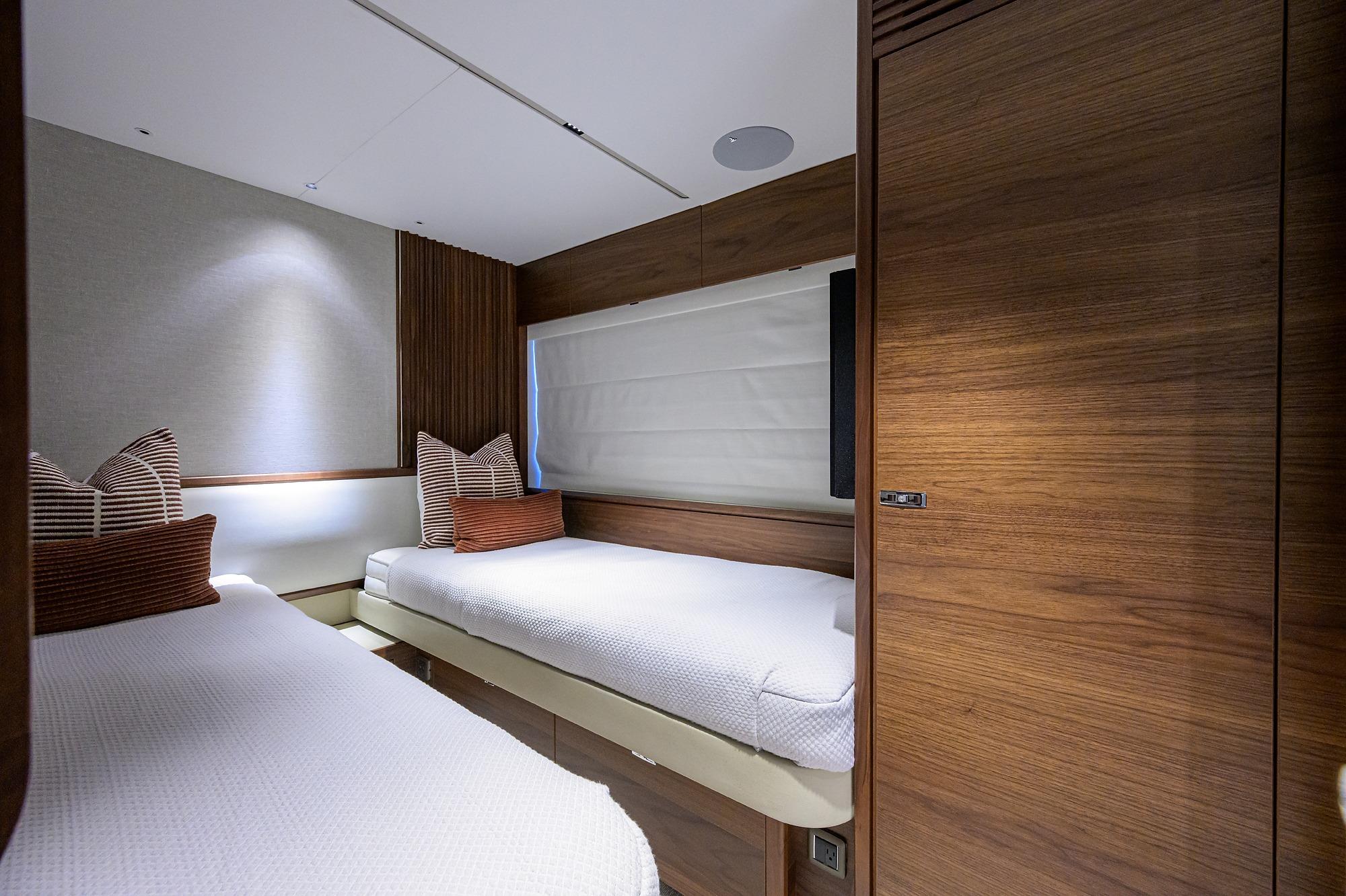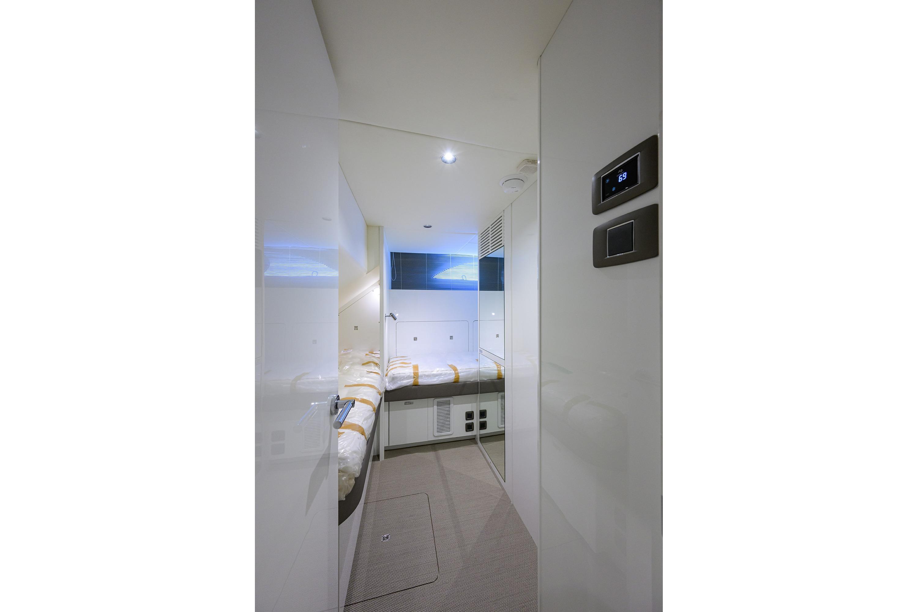 • Hand operated fire extinguishers in all guest cabins, galley, crew quarters and flybridge