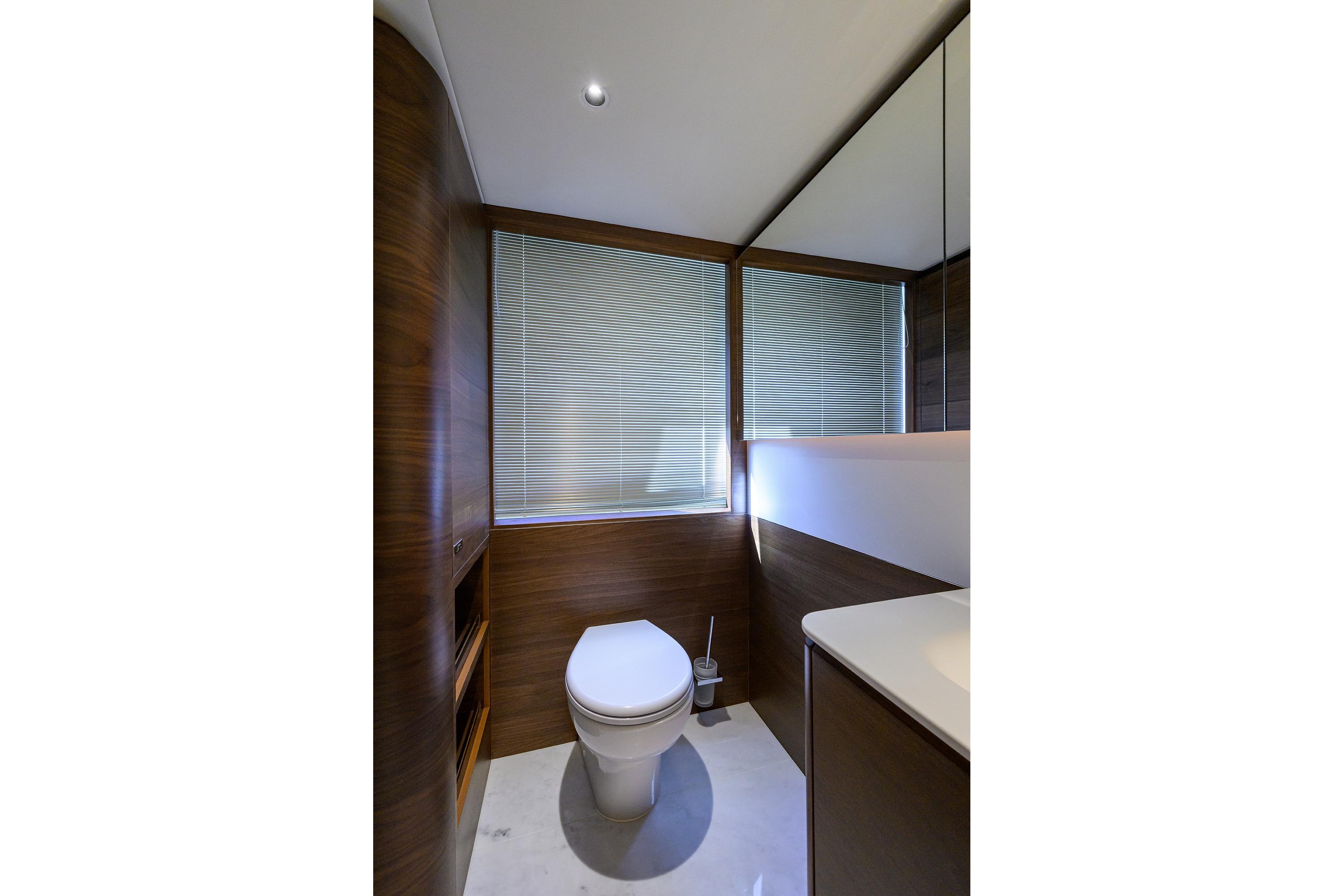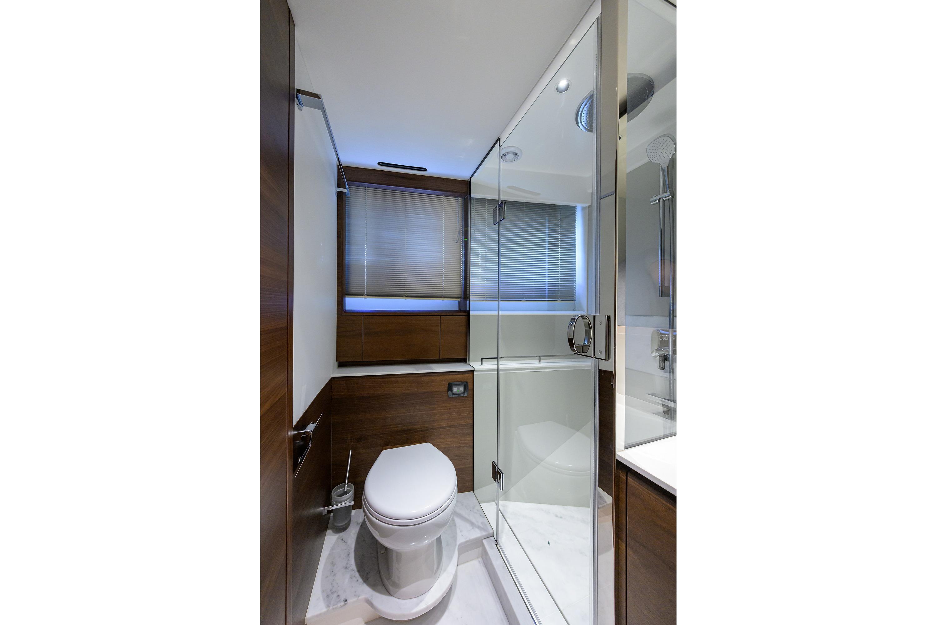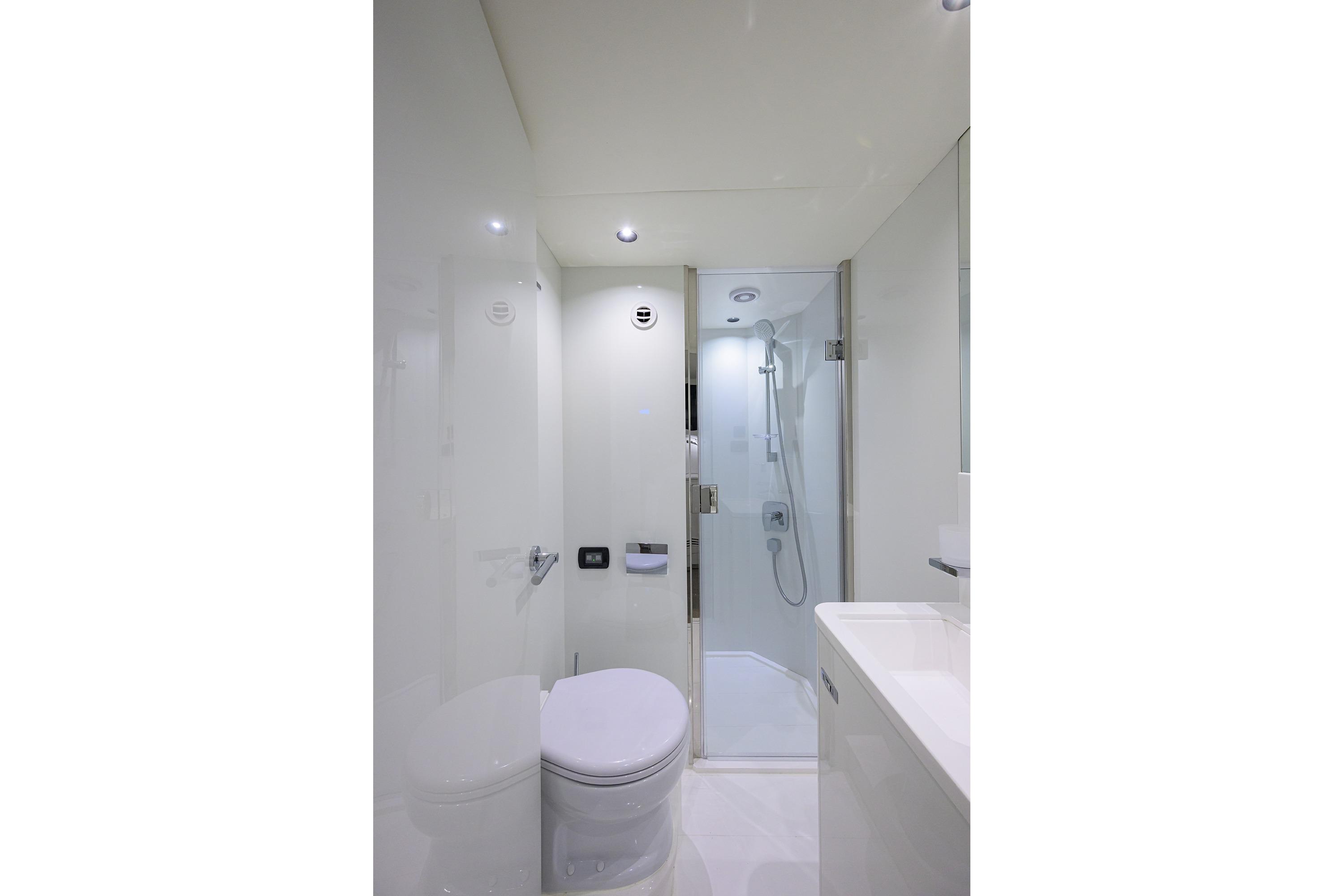 • Electric freshwater toilet system linked to 500 litres holding tank, content gauge and