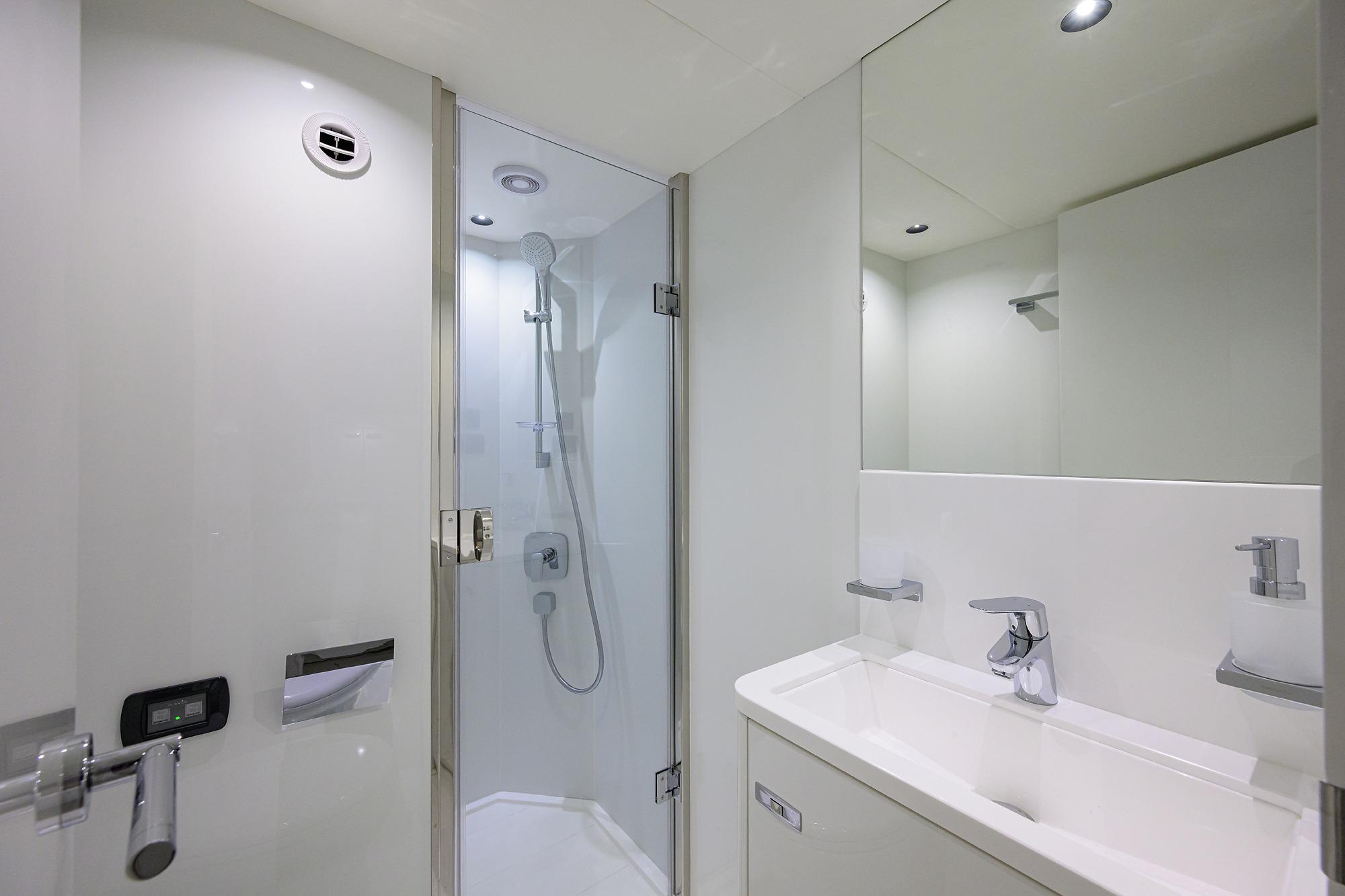 • Crew cabins have fitted carpet, Crew bathrooms have Solid Surface floors and