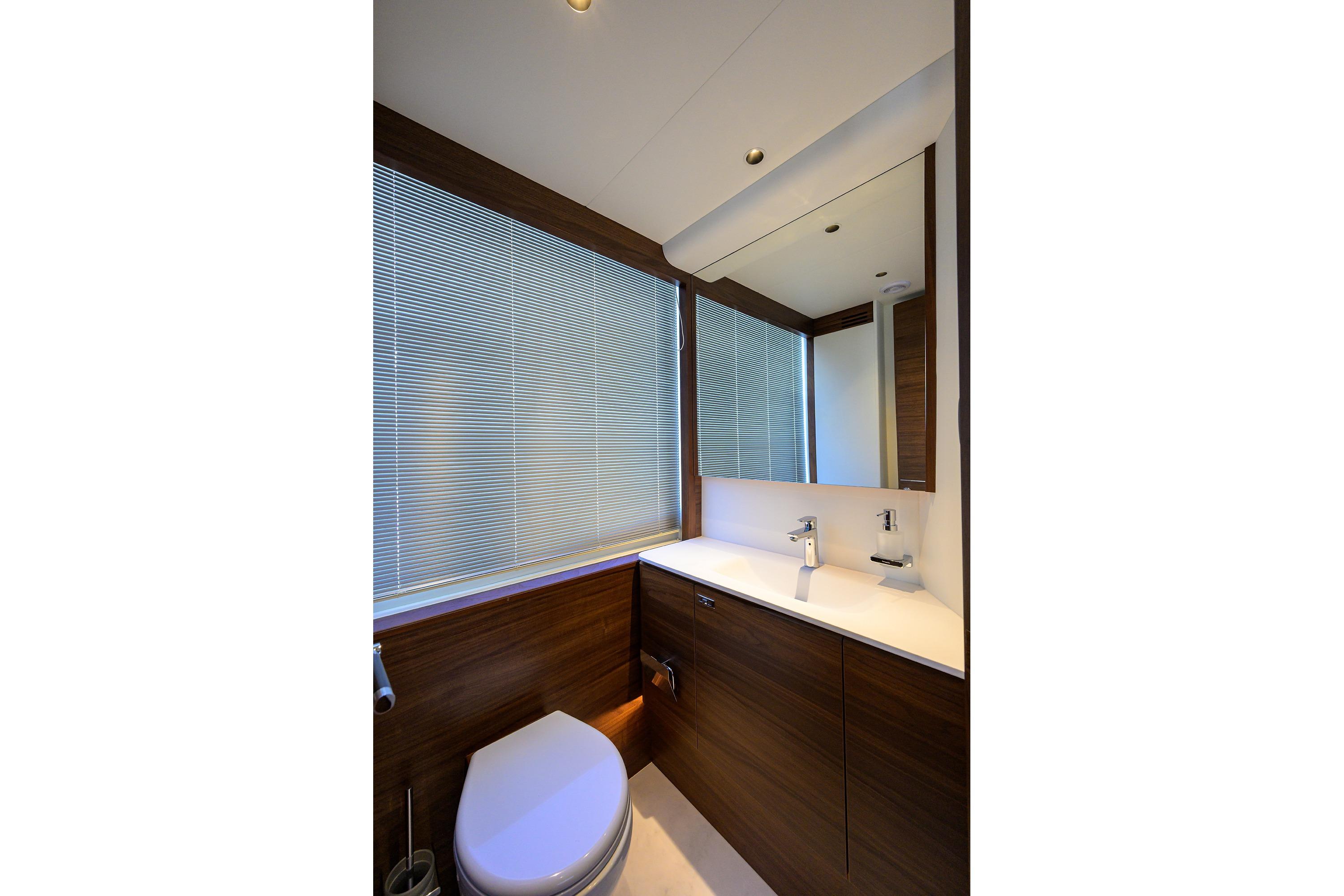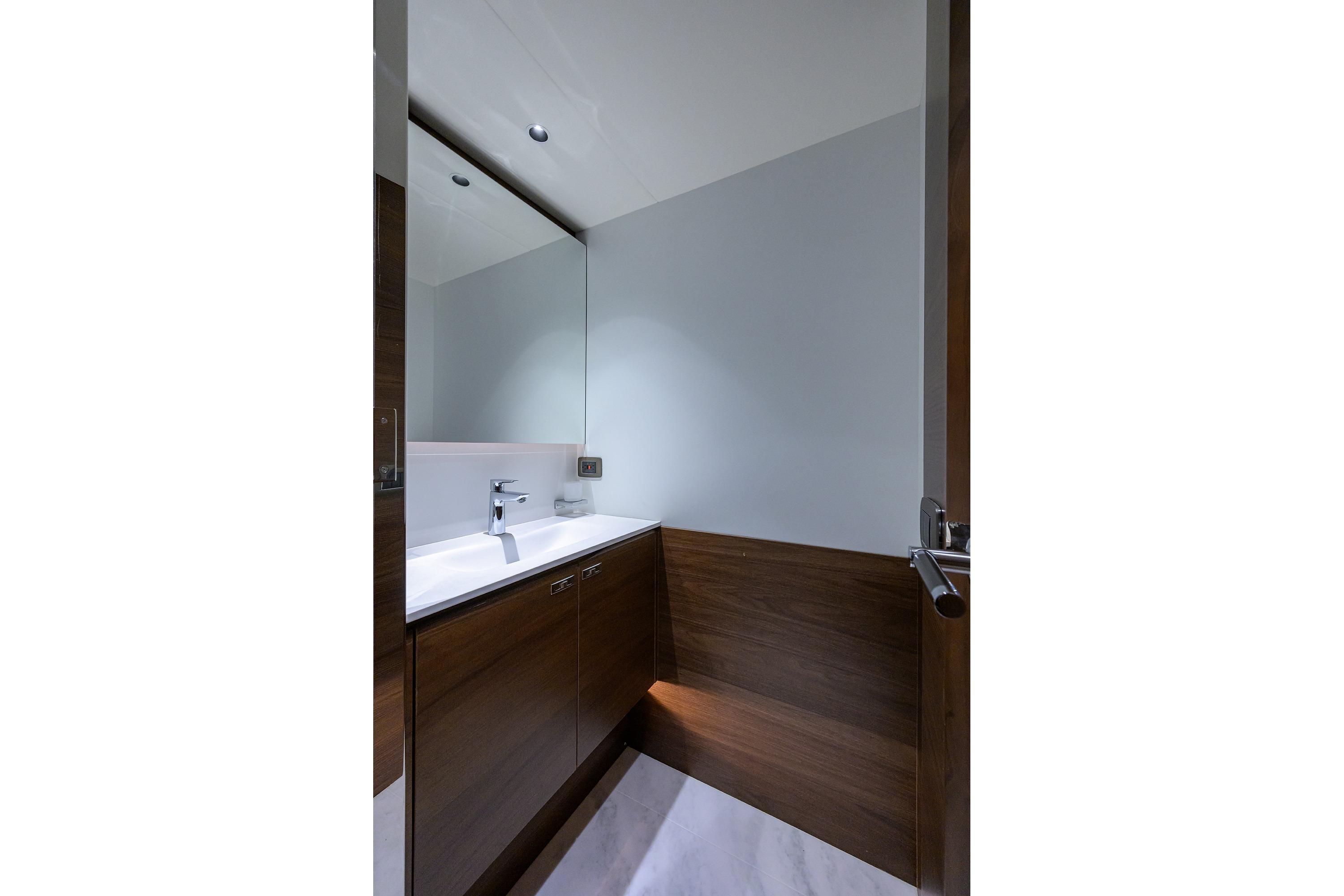 • Wash hand basin with mixer tap to portside