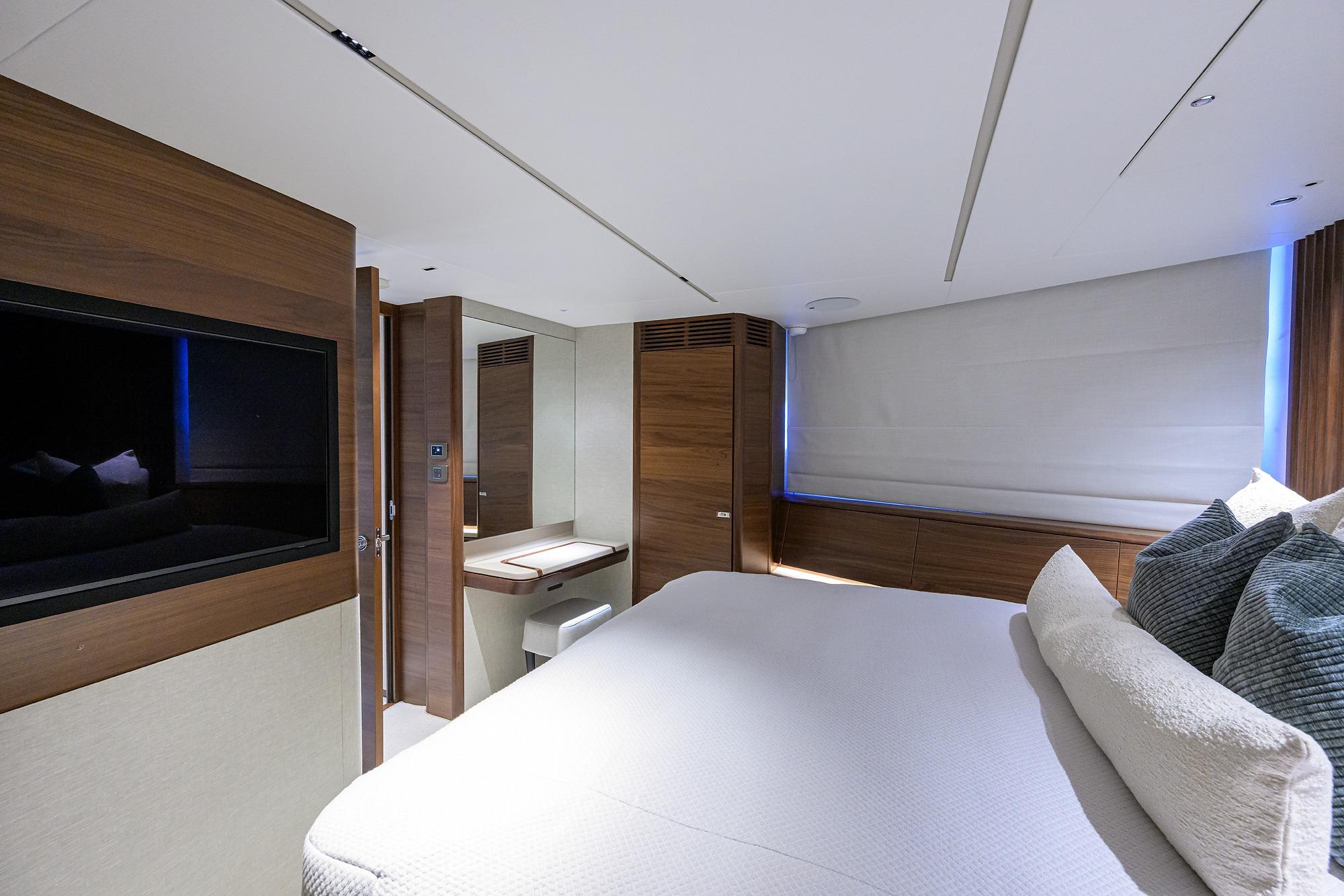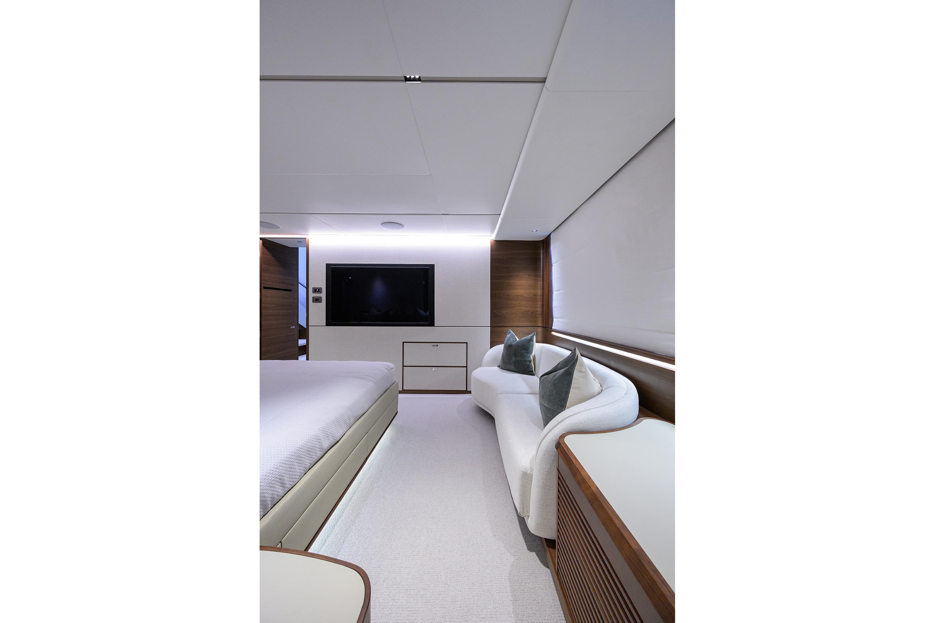 Following in the wake of the X95, the X80 is not trying to fit into a niche that already exists. She is at once everything you know, yet nothing you recognize. The X80 has been developed to offer a unique boating lifestyle, one that is tailored to how each owner wants to use their yacht. The X80 is at once an open-concept dream, whilst retaining a host of distinct spaces, creating boundaries without walls. Boasting class-leading outdoor space, she has been painstakingly designed to offer the most versatile and accommodating experience, while keeping design and style at the forefront. Princess Yachts’ long-standing naval architect, Olesinski, has partnered with Italian design heavyweights Pininfarina to create the ultimate in avant-garde yacht design. The X80 makes a statement wherever she goes, and her muscular yet timeless lines give her an air of perpetual motion, always ready to start her next adventure. The X Class may be ground-breaking, but they still remain a Princess. Beautiful design, flawless interior fit out and an unrivalled aftersales experience are a staple across the fleet, and the X80 is no different. The X80 ‘Superfly’ is a true Princess: she is always moving forward and shattering eXpectations.