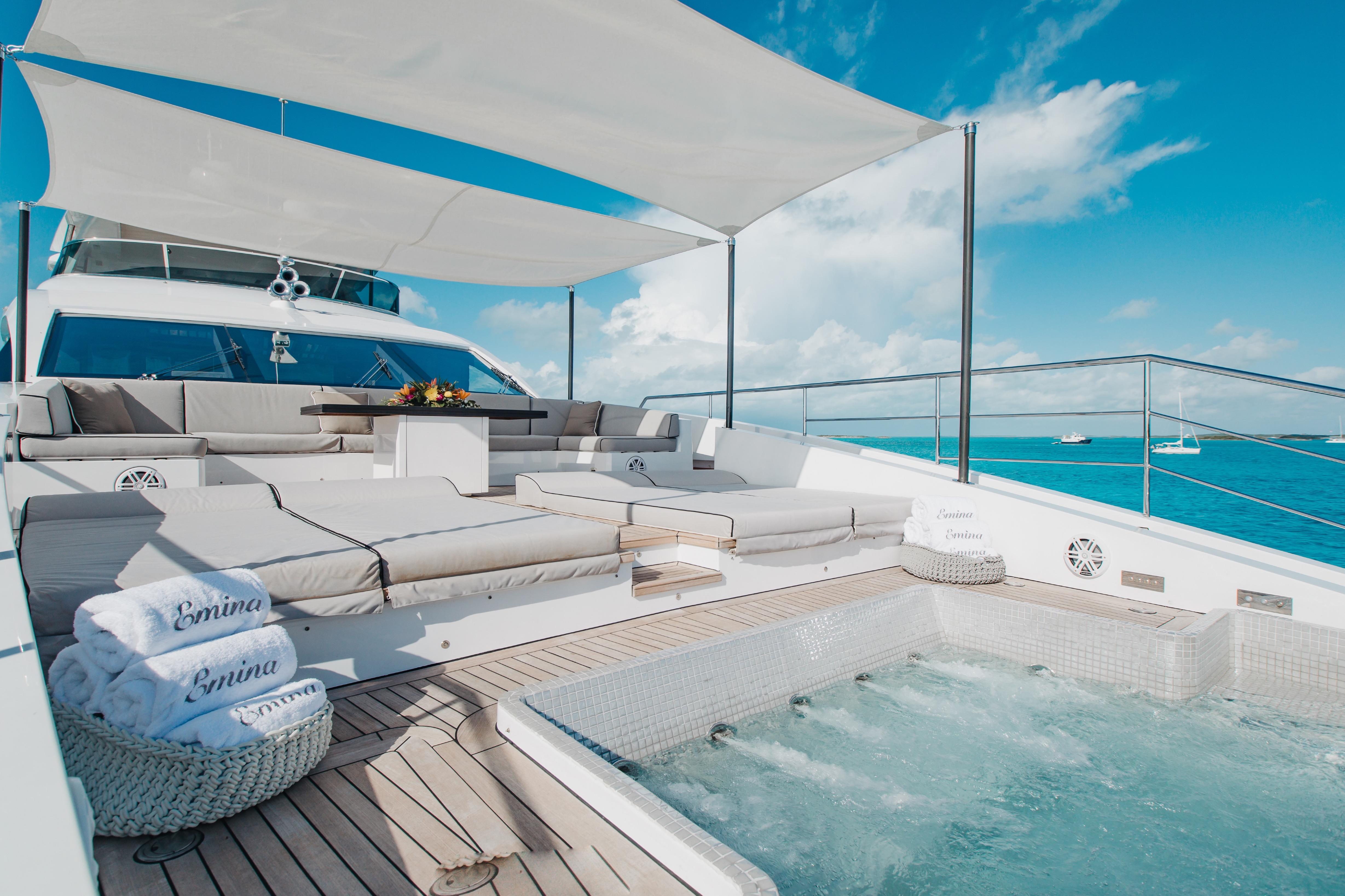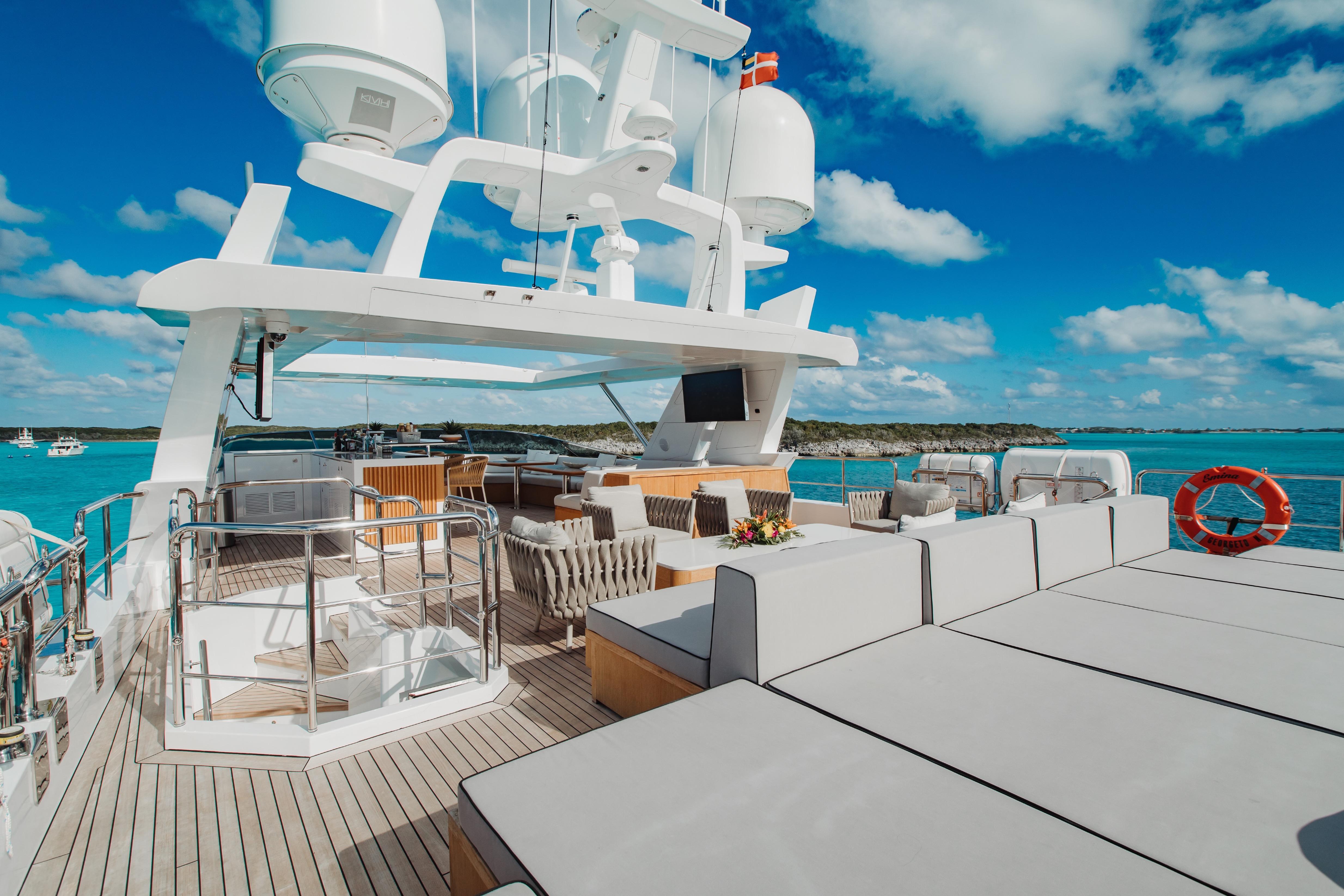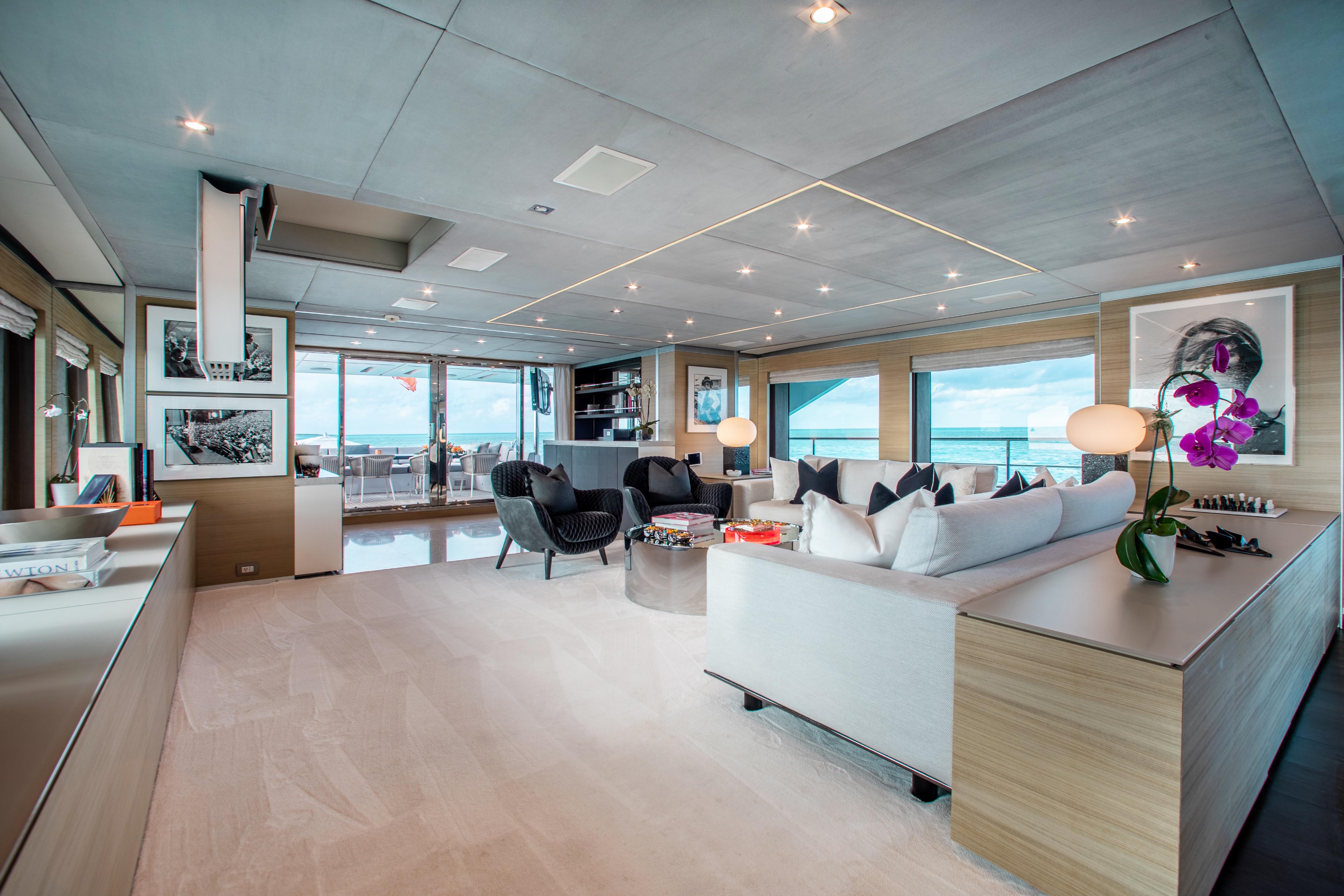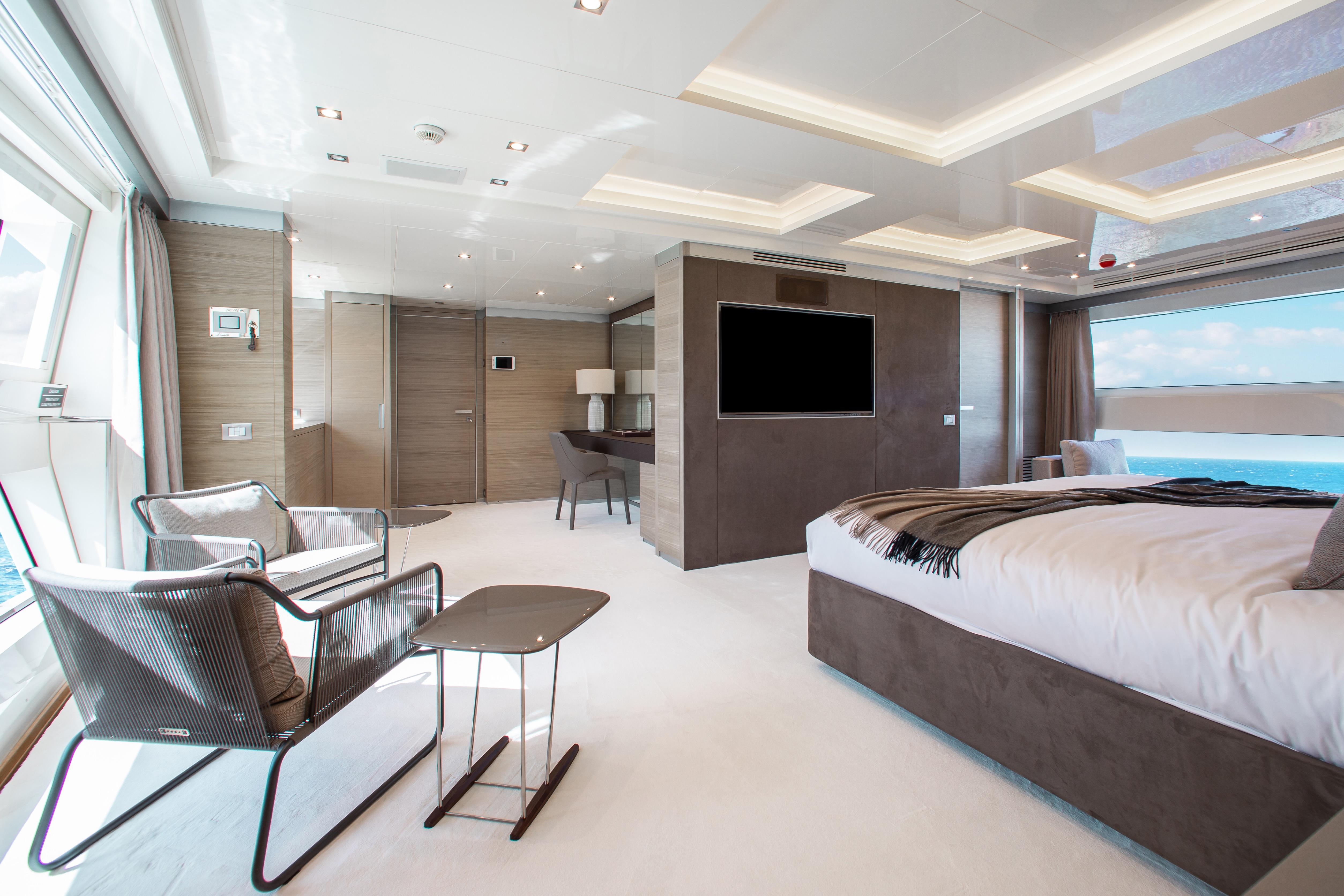 With superyacht level amenities, she offers a very large full beam master stateroom, made even more spacious with a starboard side balcony and a very large sundeck measuring 830 sq feet with pool.