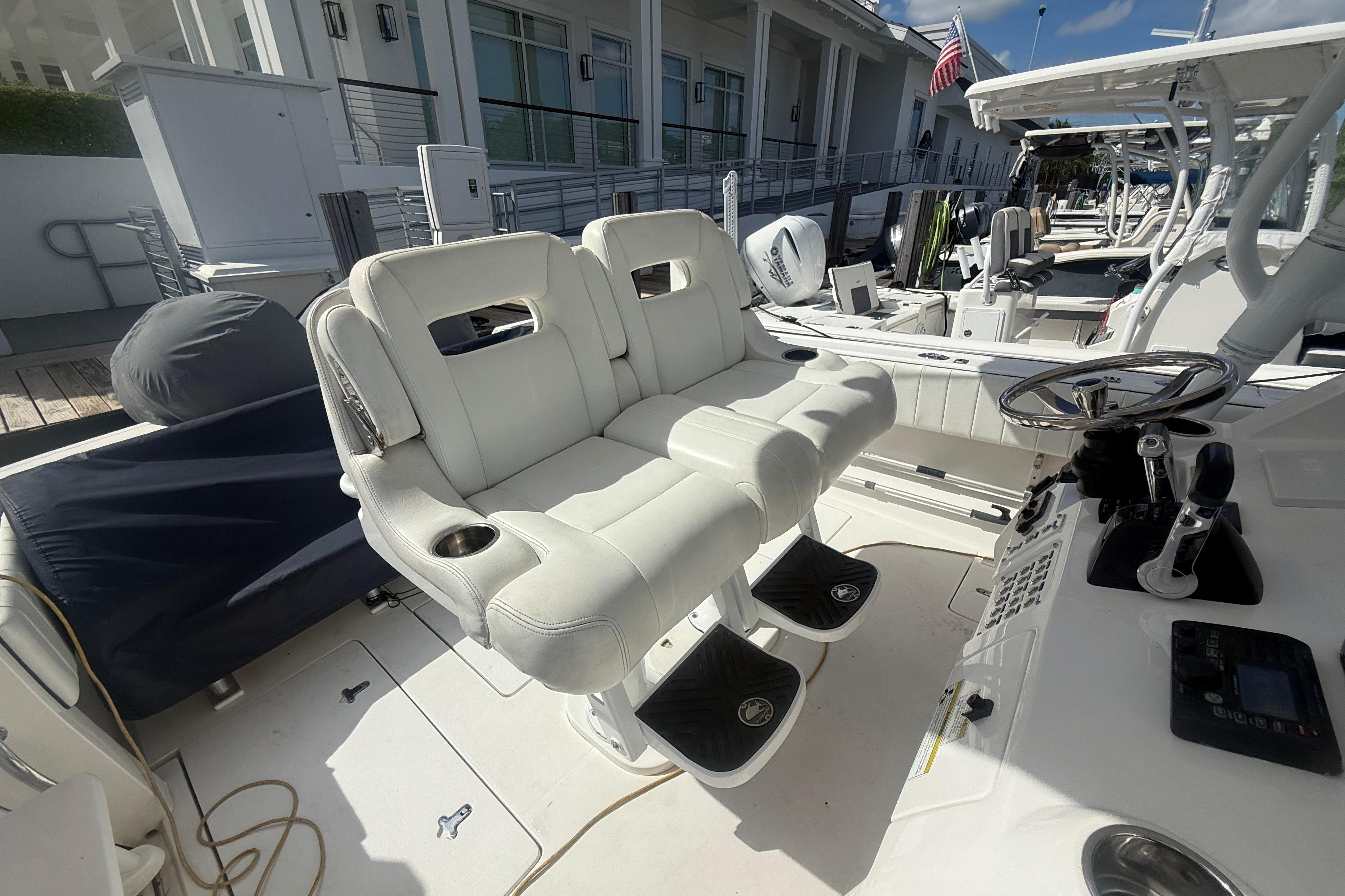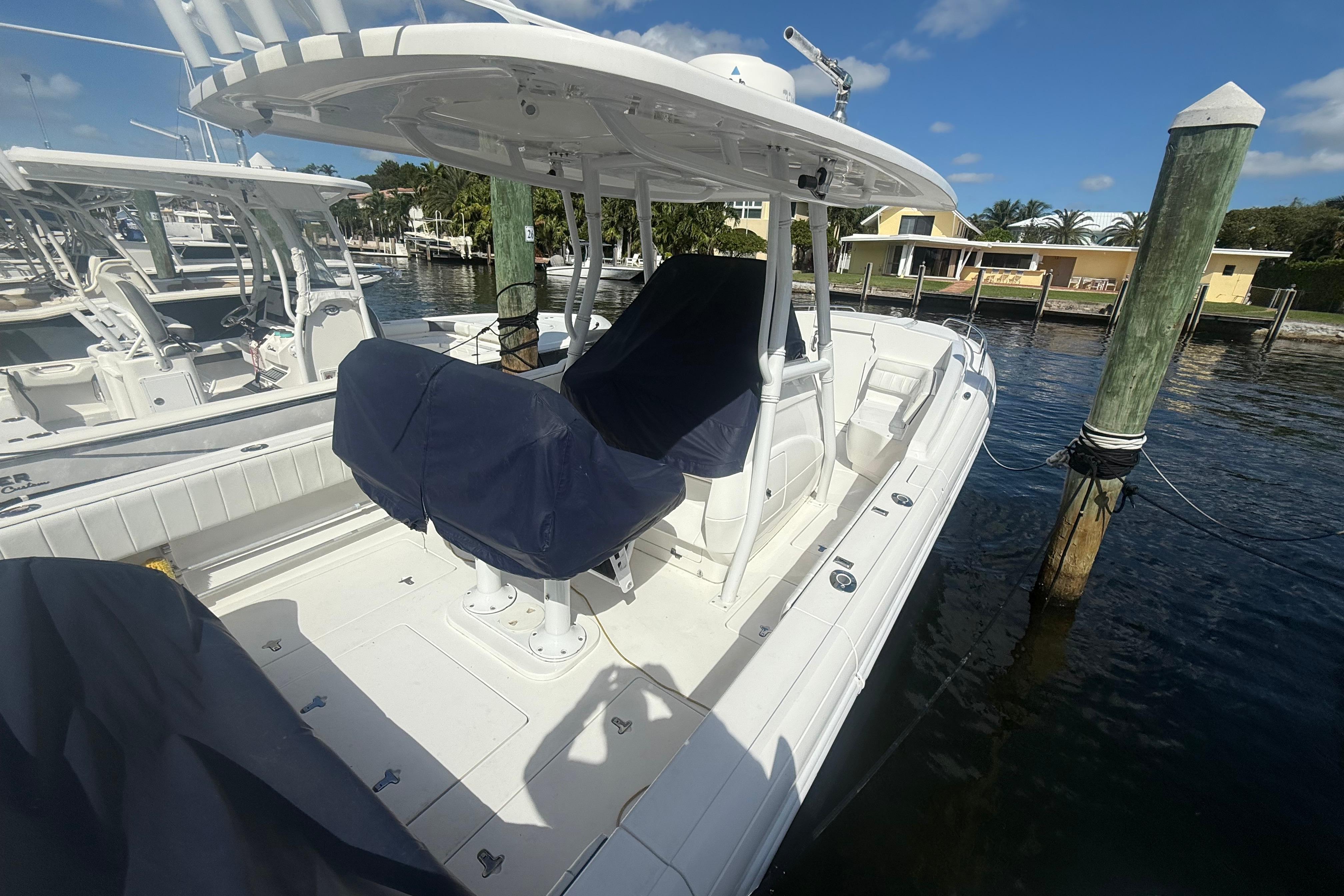 Introducing the 2013 Intrepid 327 Cuddy, a remarkable used vessel that seamlessly blends performance and comfort. With an overall length of 32 feet, this Cuddy Cabin is designed for both adventure and relaxation on the water. The deep Vee hull, crafted from durable fiberglass, ensures a smooth and stable ride, making it ideal for various marine conditions. Powered by twin Yamaha F300 outboard engines, each delivering an impressive 300 horsepower, this boat promises exhilarating speed and responsiveness. With only 460 hours of use, these engines are ready for many more thrilling journeys. Equipped with an electric windlass and a flushable Head, the Intrepid 327 Cuddy enhances convenience during anchoring, allowing for effortless handling. This vessel is perfect for those seeking a blend of performance, reliability, and modern features, making it an excellent choice for both seasoned mariners and newcomers alike.