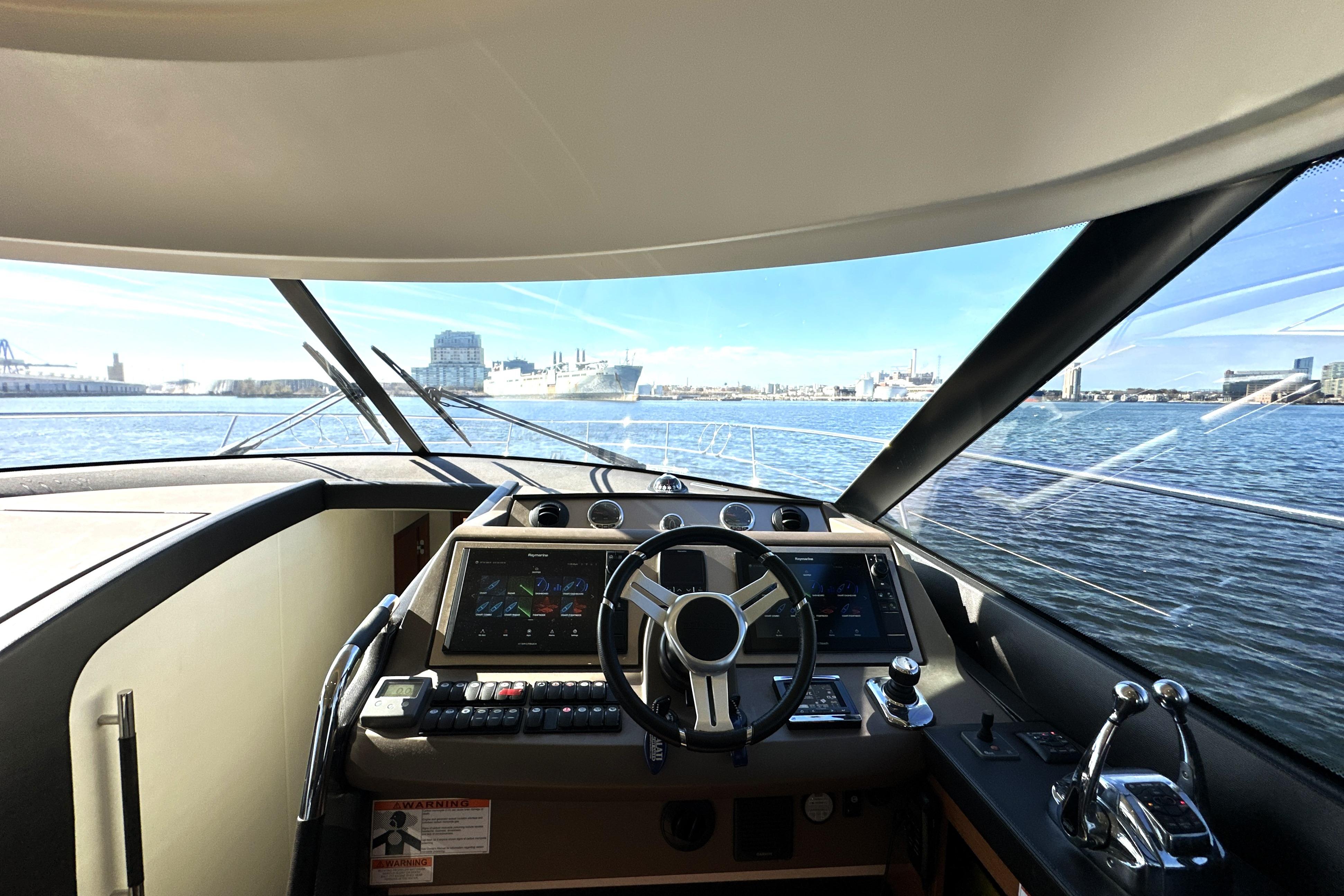This Prestige is equipped with a full Raymarine suite, ensuring confidence whether navigating short coastal hops or long bluewater passages. Safety is further enhanced with a FLIR InfraRed camera for nighttime navigation and an engine room camera for real-time monitoring.